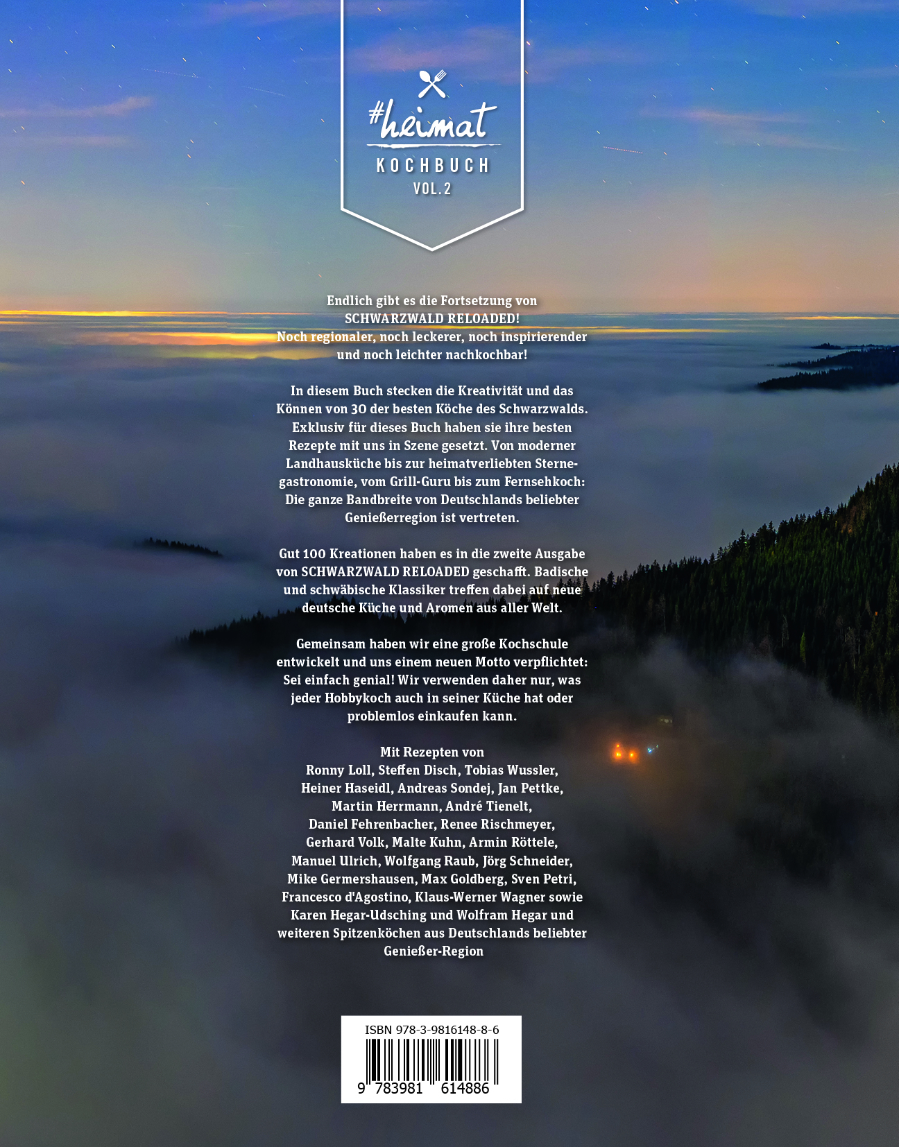 | Schlagworte | Andreas Sondej • Badische Küche • Black Forest • Francesco d'Agostino • Gerhard Volk • Heimat • Klaus-Werner Wagner • Kochbuch • Kochen • Kochschule • Malte Kuhn • Martin Buchleither • Mike Germershausen • Ronny Loll • Schwarzwald • Schwarzwälder Kochschule • Schwarzwald Klassiker • Schwarzwald Reloaded • Tietge • Viktoria Fuchs |