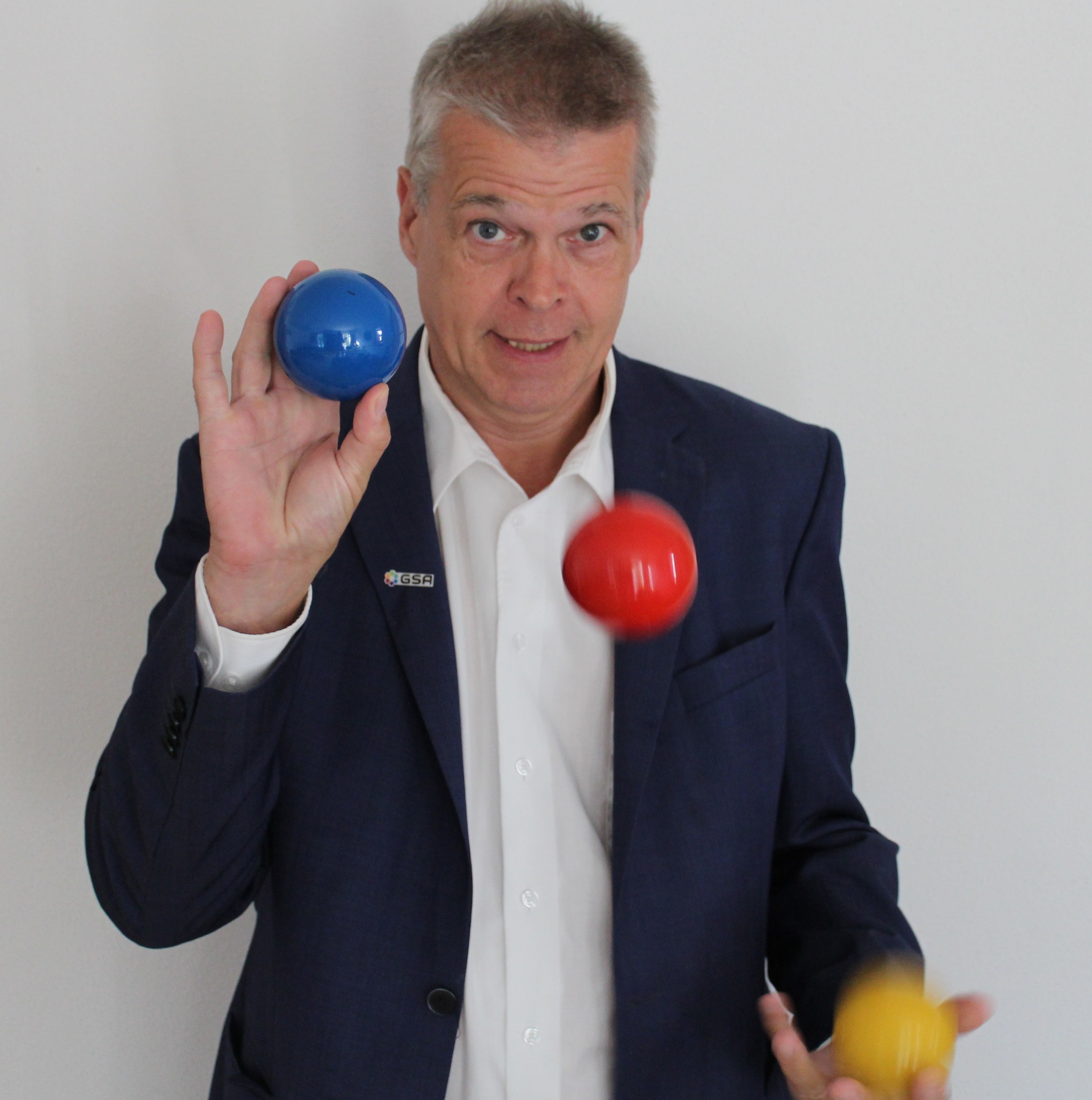 Multitalent Stephan Ehlers hält im wahrsten Sinne des Wortes viele Bälle in der Luft. Er ist Experte für Jonglieren und Gehirn-Wissen und seit mehr als 20 Jahren gefragter Speaker, Moderator und Profijongleur. Ehlers vermittelt Themen wie Change, Motivation und Lernen-lernen wie kein anderer äußerst vergnüglich, „merk”-würdig, dabei seriös und nachhaltig. Egal ob mit Keynotes, Comedy oder kundenindividueller „Business-Jonglage“. Aktuelle Erkenntnisse der Gehirnforschung verknüpft er sehr unterhaltsam mit konkreten Tipps für die effektive Umsetzung. Farbe und Bewegung seiner drei Jonglierbälle setzt er geschickt für die emotionale Verankerung der Inhalte ein. Informativ. Inspirierend. Interaktiv. Stephan Ehlers ist Erfinder der erfolgreichen Jonglier-Lernsysteme REHORULI und JOKOKO sowie Betreiber der Webseiten www.Jonglierschule.de und www.Online-Akademie-Jonglieren.de