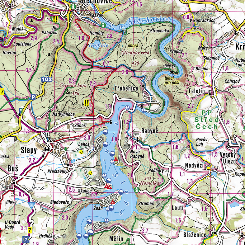 Der Fahrrad-Atlas, die das ganze Gebiet der Tschechien im detaillierten Maßstab 1: 75.000 erfasst. Er enthält markierte und empfohlene Radwegen mit der Kilometerangaben und Oberflächenart.