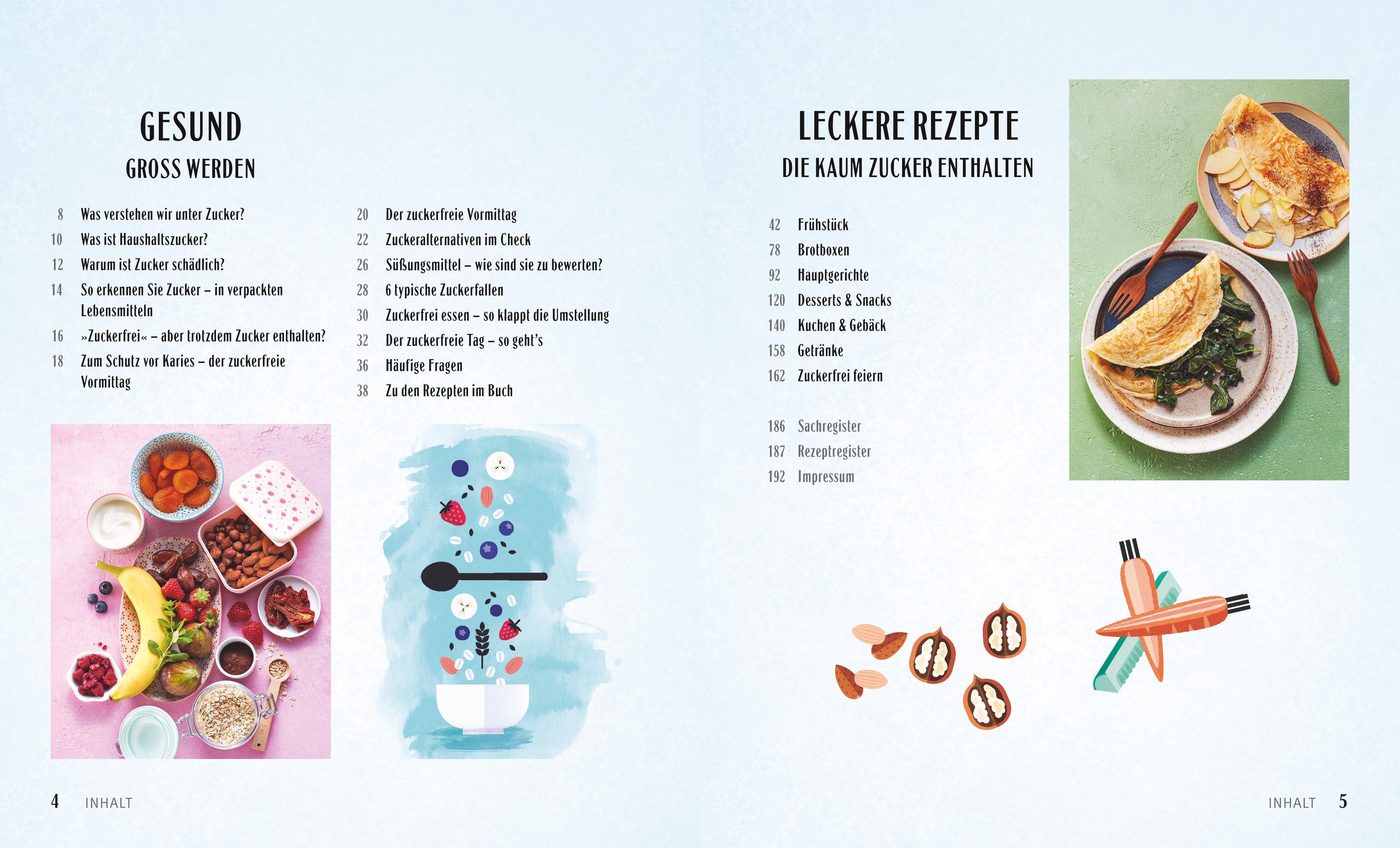 Das Kochbuch kann nicht nur mit leichter Theorie und vielen Praxistipps überzeugen, sondern präsentiert in sieben Kapiteln, wie leicht sich Ernährung ohne Zucker im Familienhaushalt umsetzen lässt.