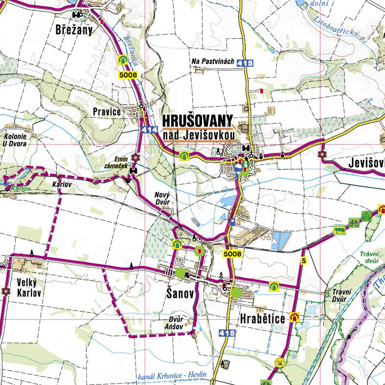 Radkarte im Maßstab 1:110 000 enthält markierte Routen in Südmähren - Weinstraßen (zusammen 1000 km) durch wunderschöne Landschaft mit Weinbergen, romantischen Städchen, prächtigen Schlössern und traditionellen Weinkellern.
