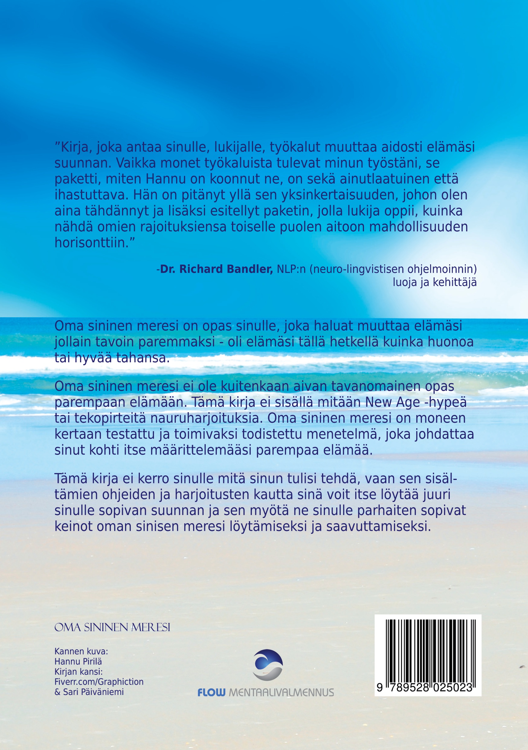 Tämä kirja ei kerro sinulle mitä sinun tulisi tehdä, vaan sen sisältämien ohjeiden ja harjoitusten kautta sinä voit itse löytää juuri sinulle sopivan suunnan ja sen myötä ne sinulle parhaiten sopivat keinot oman sinisen meresi löytämiseksi ja saavuttamiseksi.