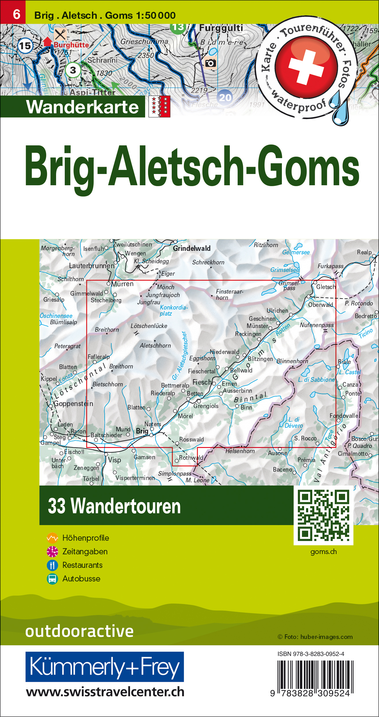 In der Kümmerly+Frey Wandertourenkarte Brig, Aletsch, Goms im Massstab 1:50'000 sind die schönsten Wanderrouten der Region für Sie zusammengetragen.