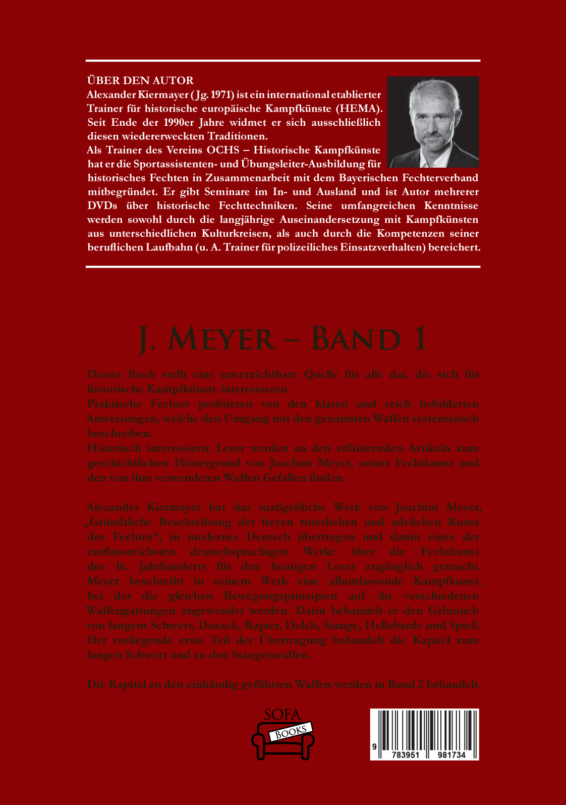 Alexander Kiermayer (Jg. 1971) ist ein international etablierter Trainer für historische europäische Kampfkünste (HEMA). Seit Ende der 1990er Jahre widmet er sich ausschliesslich diesen wiedererweckten Traditionen. Als Trainer des Vereins OCHS - Historische Kampfkünste hat er die Sportassistenten- und Übungsleiter-Ausbildung für historische Fechttechniken. Seine umfangreichen Kenntnisse werden sowohl durch die langjährige Auseinandersetzung mit Kampfkünsten aus unterschiedlichen Kulturkreisen, als auch durch die Kompetenzen seiner beruflichen Laufbahn (u.a. Trainer für polizeiliches Einsatzverhalten) bereichert.