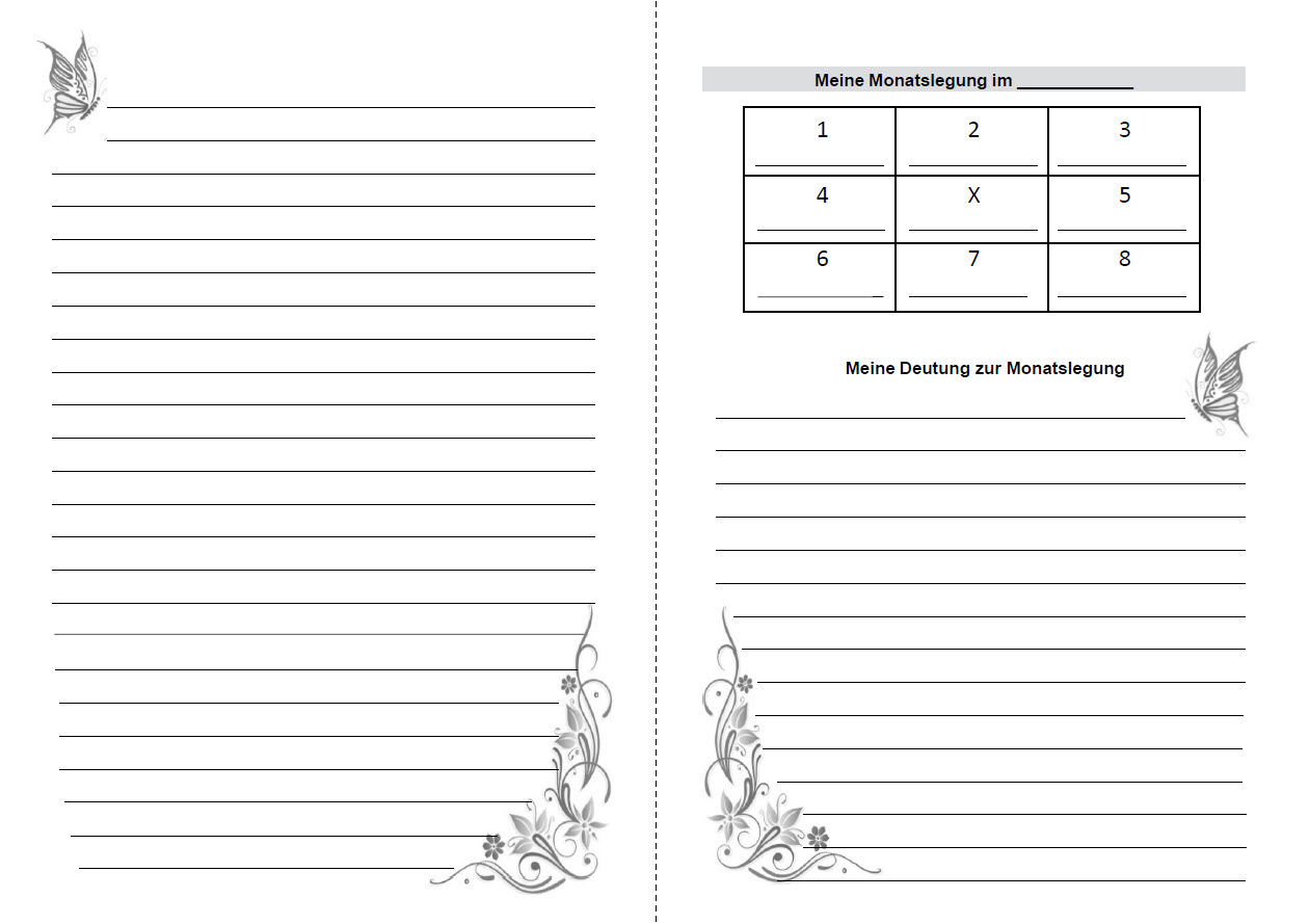 * 7 Seiten am Ende des Planers: Für die Monatslegung linierte Seiten um die Deutung der Legung aufzuschreiben oder alternativ zur freien Nutzung.