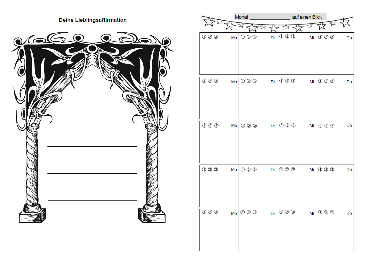 * 7 Seiten am Ende des Planers: Für die Monatslegung linierte Seiten um die Deutung der Legung aufzuschreiben oder alternativ zur freien Nutzung.