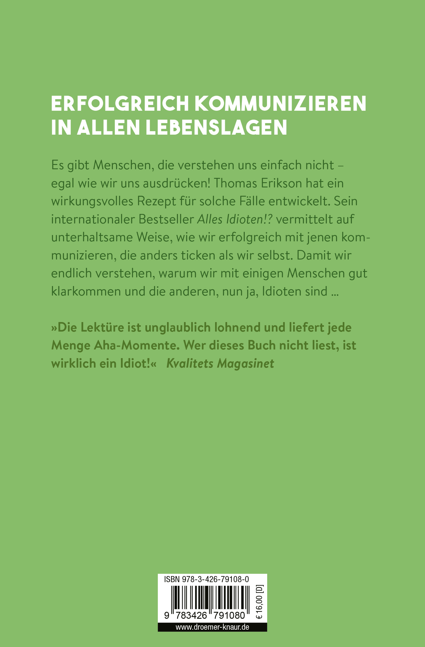 Autor Thomas Erikson fragt: Wie oft werden wir nicht oder falsch verstanden? Wie oft sind unsere Beziehungen zu anderen Menschen von Missverständnissen getrübt? Wie oft glauben wir, wir seien nur von Idioten umgeben? Kurzum: