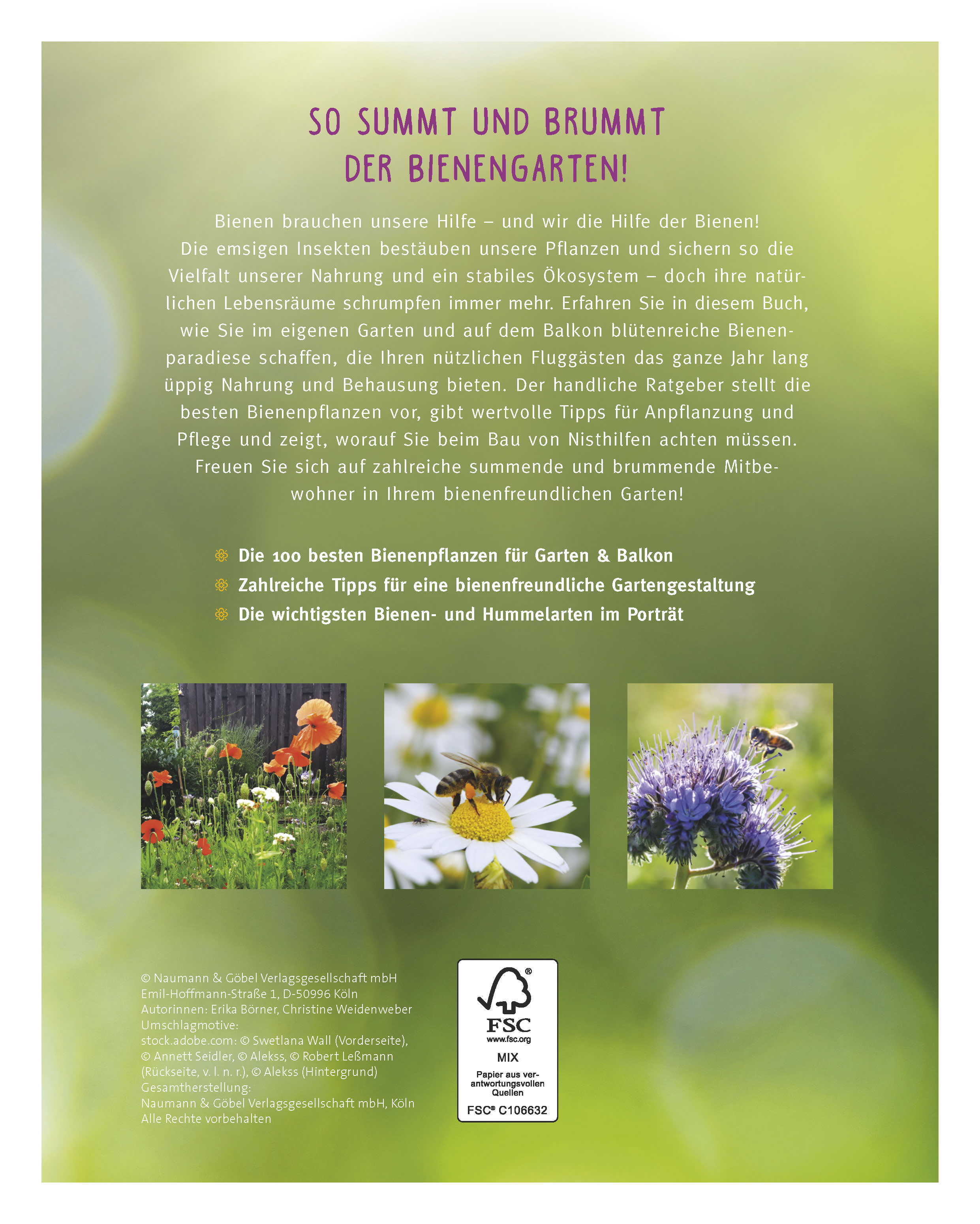Der reich bebilderte Ratgeber gibt Ihnen zahlreiche Tipps für eine bienenfreundliche Gartengestaltung, zeigt, worauf Sie beim Bau von Nisthilfen achten müssen, porträtiert die wichtigsten Bienen- und Hummelarten und stellt die 100 besten Bienenpflanzen vor, die jeden Garten rund ums Jahr zum Bienen-Hotspot machen. Freuen Sie sich auf zahlreiche summende und brummende Mitbewohner in Ihrem bienenfreundlichen Garten!
