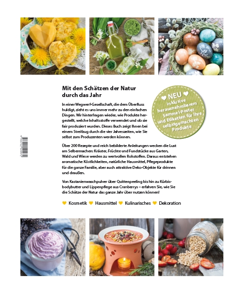 | Schlagworte | Basteln • Dekoration • Do it yourself • Etiketten • Früchte • Garten • Hausmittel • Jahreszeiten • Kastanienwaschpulver • Kosmetik • Kräuter • Kulinarisches • Kürbisbodybutter • Lippenpflege • Pflegeprodukte • Poster • Quittenpeeling • Sammelkalender • Selbermachen • Wald • Wiese |