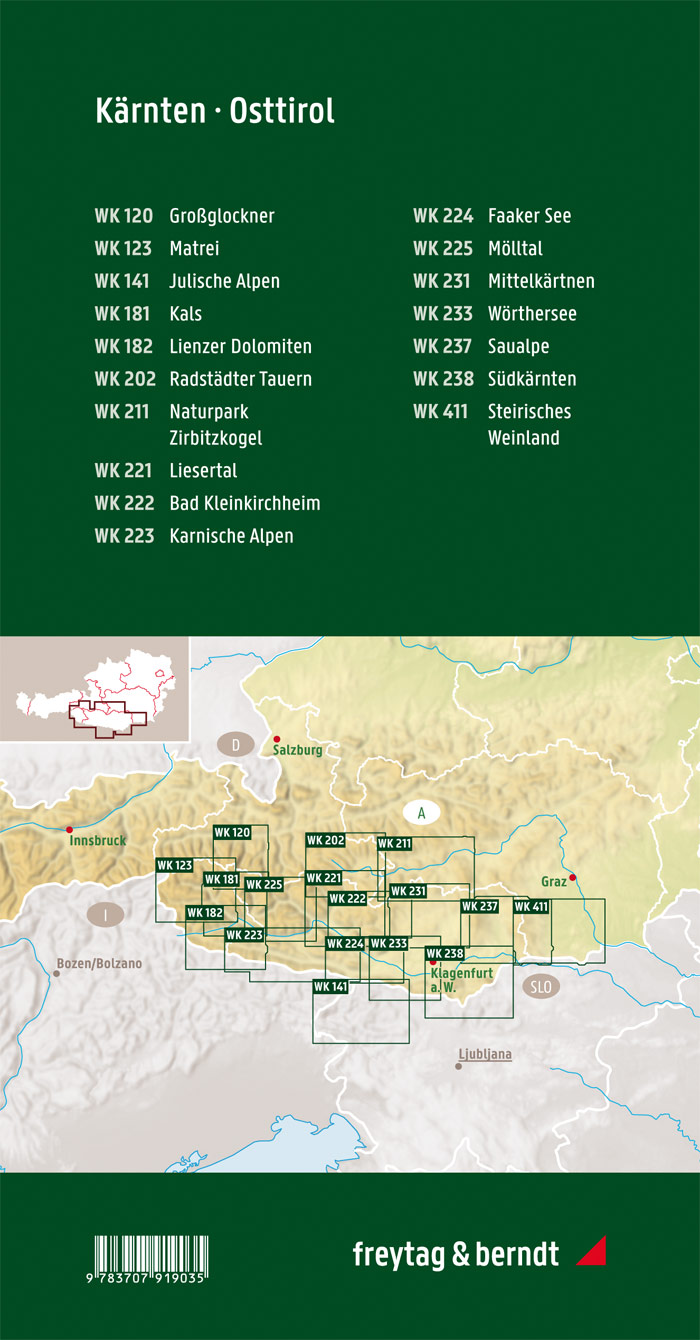Diese einzigartige Wanderkartenbox enthält ein Set mit allen 20 Wanderkarten für Kärnten und Osttirol im Maßstab 1:50.000! Sie ist ideal für Vielwanderer, die auf ihren Touren jedes Fleckchen Natur erkunden möchten!
