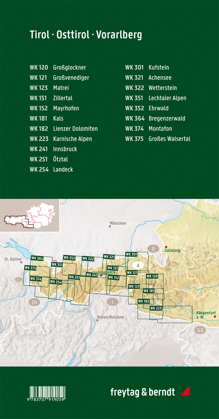 Diese einzigartige Wanderkartenbox enthält ein Set mit allen 22 Wanderkarten für Tirol, Osttirol und Vorarlberg im Maßstab 1:50.000! Sie ist ideal für Vielwanderer, die auf ihren Touren jedes Fleckchen Natur erkunden möchten!