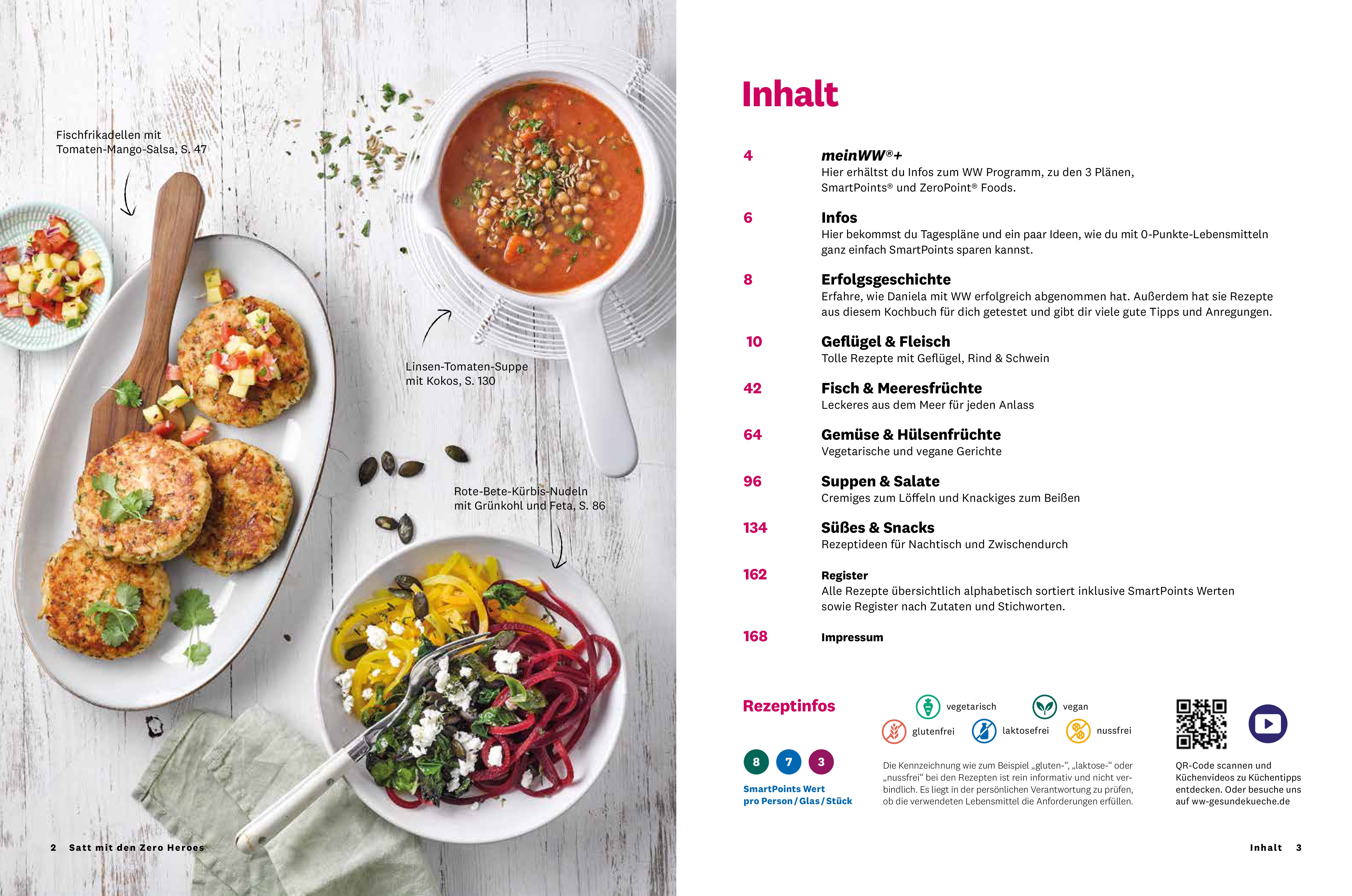 Das WW Kochbuch Satt mit den Zero Heroes steckt voller leckerer Rezepte, die sich allesamt durch ihre niedrigen SmartPoints Werte auszeichnen. Das Buch zeigt, wie es möglich ist, bewusste Ernährung, Gewichtsmanagement und Genuss in Einklang zu bringen. Das Schöne: Man muss auf nichts verzichten und ist nach den Mahlzeiten angenehm satt. Kein permanentes Hungergefühl - ein echter Zugewinn an Lebensqualität