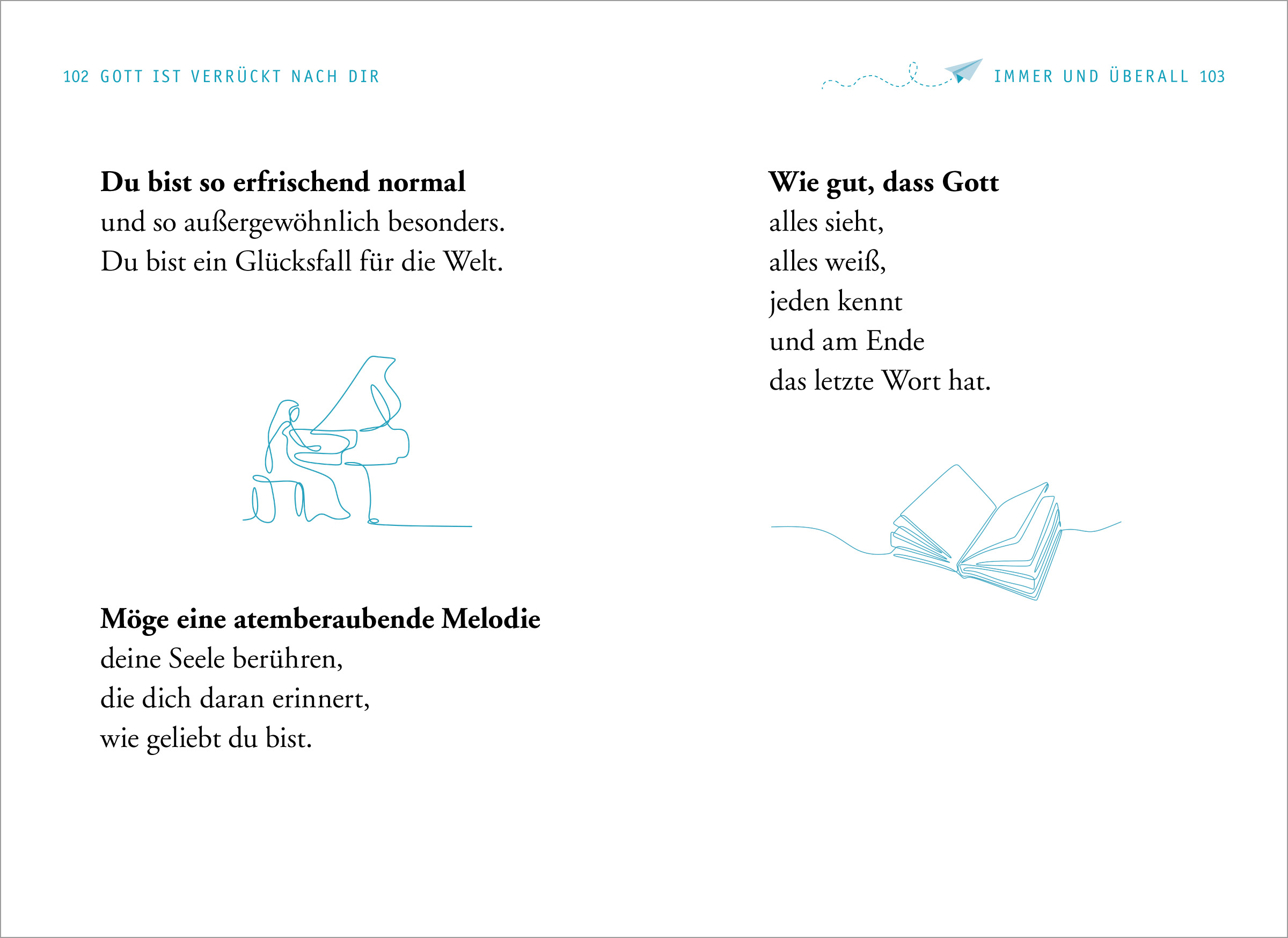 Dieses Buch beherbergt jede Menge gute Gedanken in einer Zeit, in der Mut, Hoffnung und Vertrauen ganz besonders zählen. Schwester Teresa, vielen bekannt als skateboardfahrende Nonne und göttliche Ratgeberin, hat hier ihre schönsten Gebete und Segenswünsche zu Papier gebracht. Die poetischen Texte sind eine Quelle der Kraft, spenden Trost, machen Mut, wecken Lebensfreude. Teresa Zukic versteht es mit ihrem Charisma und ihrer unvergleichlichen, mitreißenden Art, dem Leser das Gefühl zu geben, bedingungslos angenommen und geliebt zu sein. Jedem Einzelnen ruft sie zu: "Gott ist verrückt nach dir!" - In diesen Worten liegen Halt und Richtung, Zugehörigkeit und Optimismus. Dieses Büchlein ist ein unersetzlicher Begleiter - auch für die Untiefen des Lebens.