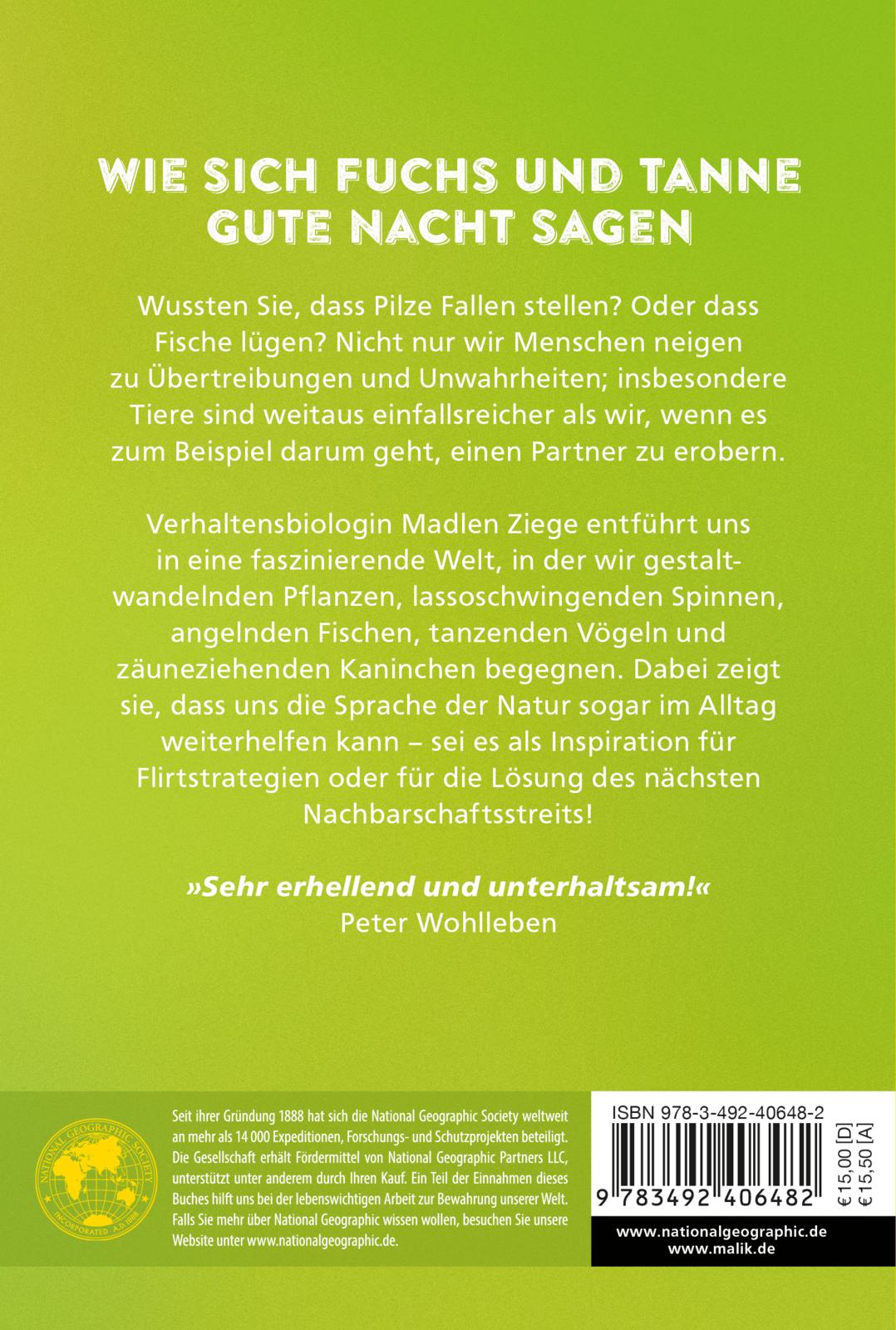 Wussten Sie, dass Fische lügen? Oder dass Fledermäuse Selbstgespräche führen? Erstaunliche Erkenntnisse aus der Wissenschaft zeigen: Tiere und Pflanzen kommunizieren ständig und auf vielfältigste Weise miteinander. Wer meint, dass nur wir Menschen zu Übertreibungen und Unwahrheiten neigen, der irrt. Vögel, Fische oder Schnecken sind weitaus einfallsreicher als wir, wenn es zum Beispiel darum geht, einen Partner zu erobern. Die Verhaltensbiologin Madlen Ziege entführt uns in eine faszinierende Welt und erklärt leicht verständlich, wie ganze Ökosysteme in Kontakt zueinander treten. Dabei zeigt sie, wie uns die Sprache der Natur im Alltag weiterhelfen kann und warum man mit Tomatenpflanzen sprechen sollte.