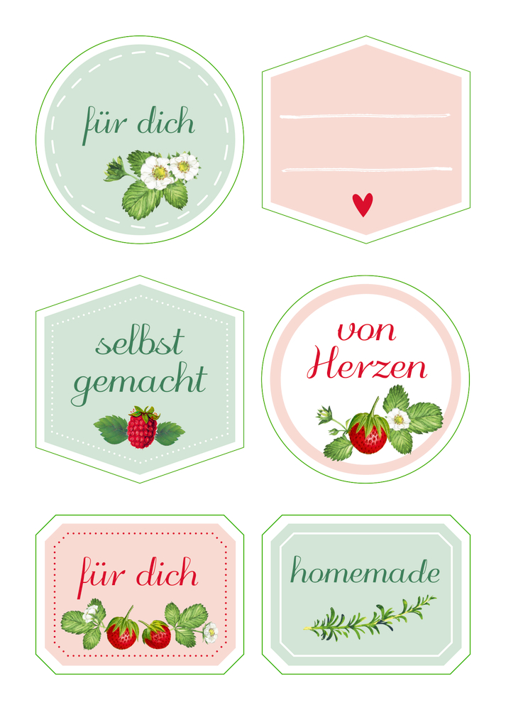 Ob eingekochte Marmelade oder Gelee, selbst gemachtes Chutney oder Pesto, Kuchen im Glas oder leckerer Likör in der Flasche: Hier finden Sie wunderschön gestaltete Sticker für Ihre kleinen Geschenke aus der Küche.