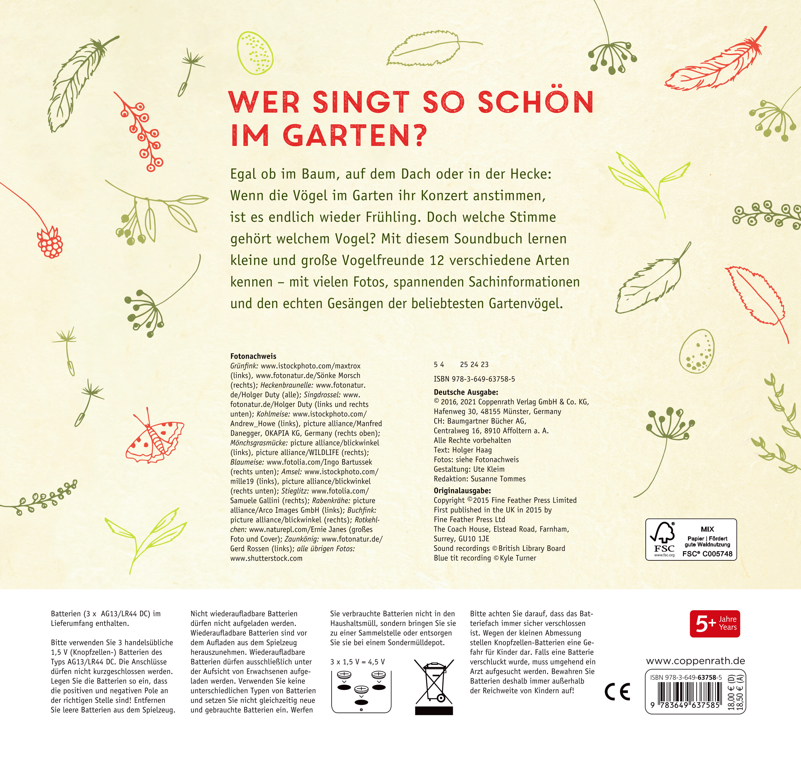| Schlagworte | Frühling • Garten • Kindersachbuch • Lernen • Natur • Singvögel • Soundmodul • Tiere • Tierstimmen • Vögel |