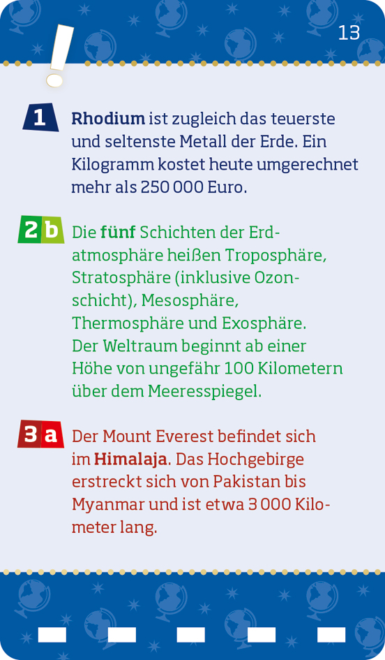 | Schlagworte | Erde • Flüsse • Gebirge • Geografie • Klima-Wandel • Kontinente • Meere • Natur • Quizblock • Quiz-Block • Quizblöcke • Rätsel • Rekorde • Wissen |