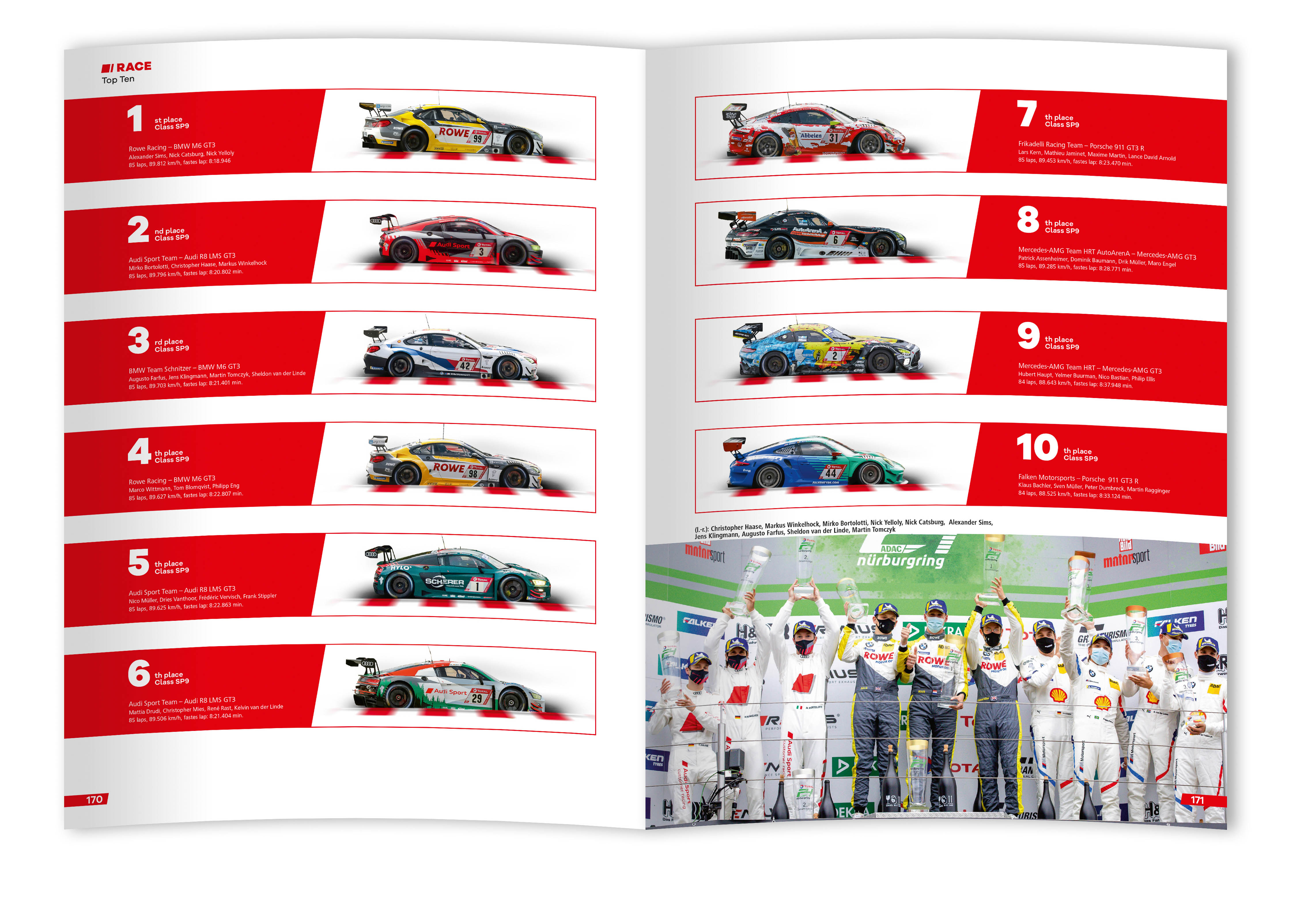 Bereits zum 20. Mal bildet dieses Buch das komplette 24-Stunden-Rennen ab und ist zudem ein großartiges Nachschlagewerk – mit umfangreichem Statistik-Teil und Rundentabellen. Ein absolutes Muss für Motorsport-Fans. The 48th ADAC Total 24h-Rennen produced another thrilling race on the Nurburgring Nordschleife despite the challenges brought about by the global pandemic. ROWE RACING secured the 20th overall win for BMW, 50 years after the Munich brand’s first win at the race. It was the first time since 2010 that a BMW crew has stood on the top step of the podium at the race, and it came after another year of wonderful competition. After a race stoppage of more than nine and a half hours overnight due to poor weather, ROWE RACING delivered a masterful performance both on track and in the pits. More rain fell with less than two hours remaining, and the crew of the #99 BMW made the right tactical decision. Having changed to wet tyres, Nicky Catsburg was able to overtake the #3 Audi for the overall lead, and delivered the dream result for the team from St Ingbert. Christopher Haase made a spirited challenge towards the end, but the day belonged to BMW.