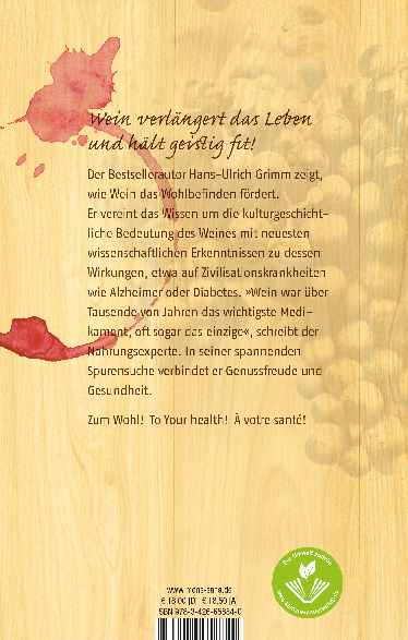 Hans-Ulrich Grimm vereint das Wissen um die kulturgeschichtliche Bedeutung des Weines mit neuesten wissenschaftlichen Erkenntnissen und betont auch die genießerische Freude, mit der man etwas für seine Gesundheit tun kann. In einer spannenden Spurensuche vereint der Bestseller-Autor alle bekannten Fakten zu einem genussreichen Lesevergnügen.