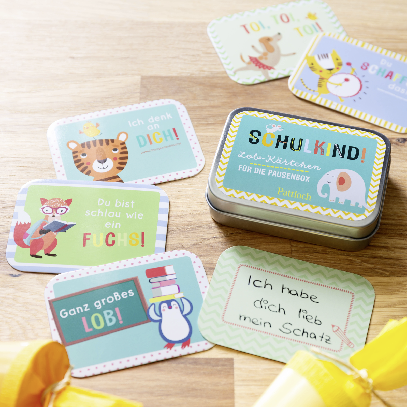 Wenn Kinder in die Schule kommen, ist das ein großer Schritt in Richtung Selbstständigkeit. Damit Grundschulkinder wissen, dass Mama und Papa auch während der Schulzeit an sie denken, gibt es diese liebevoll gestalteten Lobkärtchen für Kinder. Die kurzen, leicht erfassbaren Sprüche wie Weiter so!, Ich denk an dich oder Du bist klasse! sind auch für Leseanfänger verständlich. Auf der Rückseite der Lobkärtchen kann Mama oder Papa unterschreiben oder dem Kind eine zusätzliche Botschaft mit in die Schule geben.
