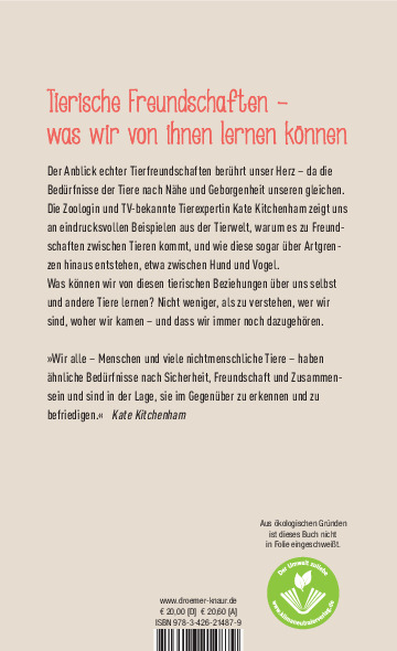 Kate Kitchenham zeigt uns an eindrucksvollen Beispielen aus der Tierwelt, warum es zu Freundschaften zwischen Tieren kommt, wie die Bindungs-Bereitschaft sogar über Art-Grenzen hinaus auch zwischen zum Beispiel Hund und Vogel entsteht und auf welchen Grundlagen das Bedürfnis nach Bindung an andere erwächst. Dabei steht die Frage im Mittelpunkt: Was können wir von diesen tierischen Freundschaften über unsere artfremden Begleiter lernen? Und was unterscheidet uns eigentlich noch von Tieren? So können wir besser verstehen, wer wir selbst sind, woher wir kamen - und dass wir dazugehören.