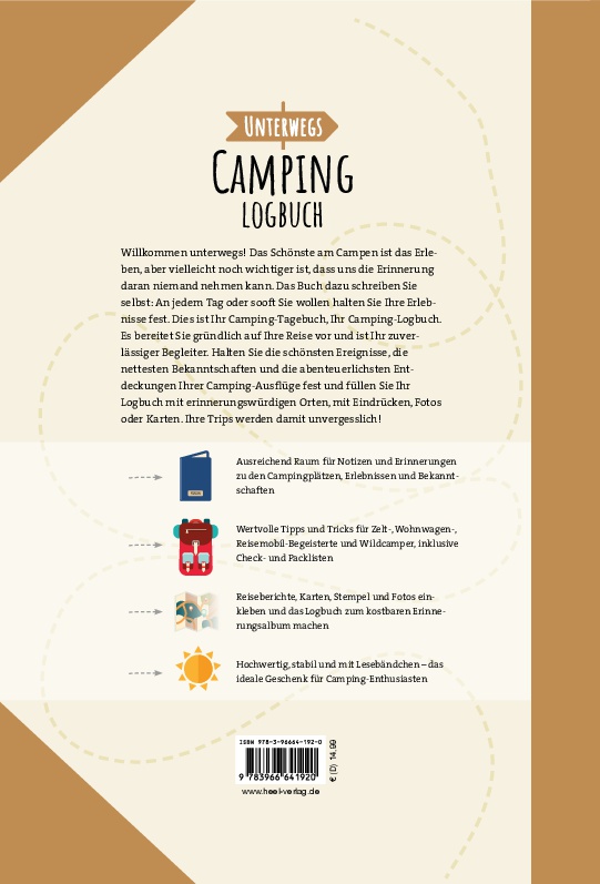 | Schlagworte | Abenteuer Camping • Adventure Journal • Camper • Campervan • Camping • Campingjournal • Camping Logbuch • Campingplatz • Caravan • Checkliste • Eintragbuch • Eintragbuch für Camper • Erinnerungen • Geschenkbuch für Camper • Journal • Logbuch • Logbuch für Camper • Ratgeber • Reisebegleiter • Reiseerinnerungen • Reiselogbuch • Reisemobil • Reiseroute • Reisetagbuch • Sellplatz • Tagebuch • Touren • Urlaub auf dem Campingplatz • Van • Wohnmobil • Wohnwagen • Zelt-Urlauber |