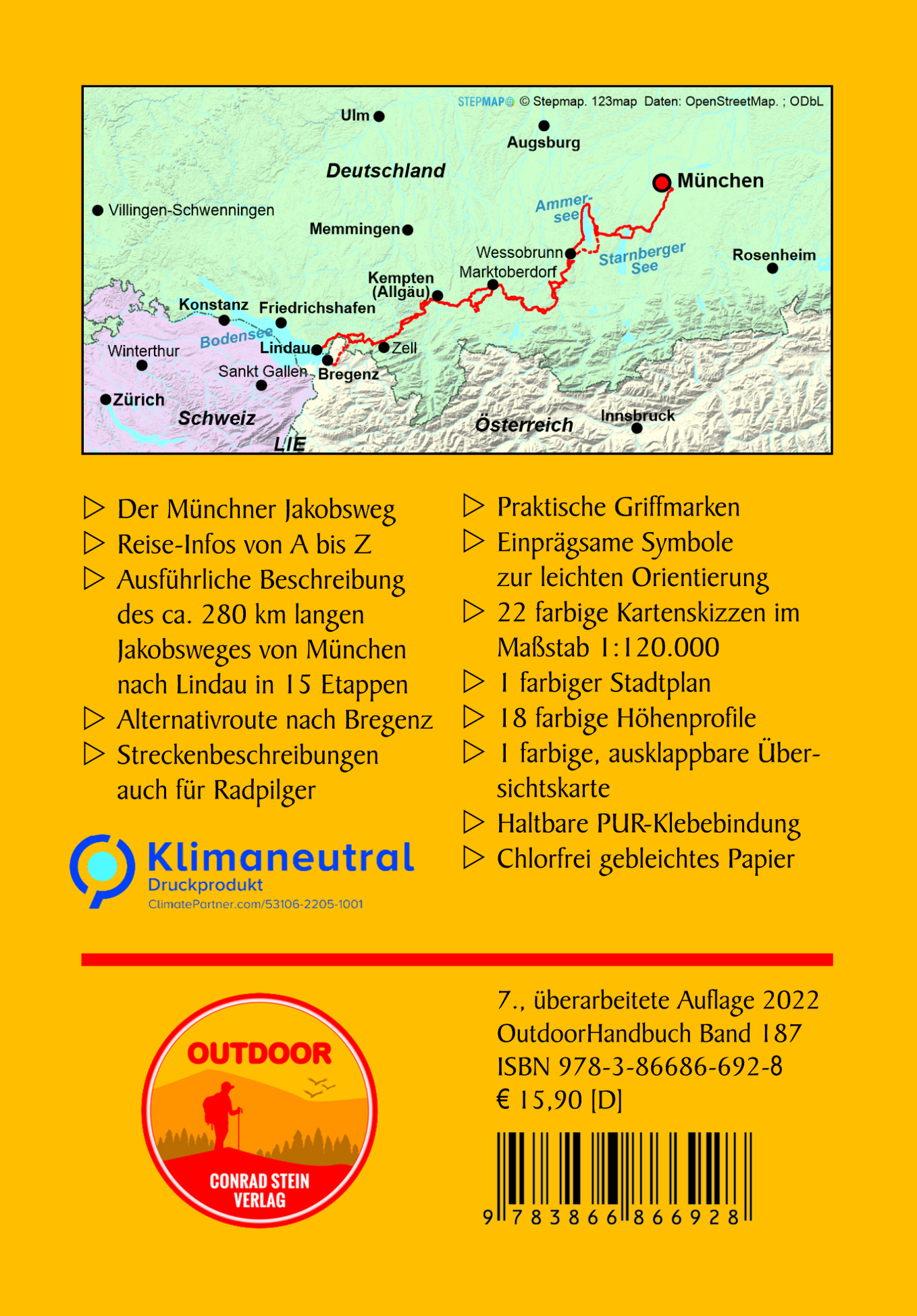 Einleitung, Der Münchner Jakobsweg, Reise-Infos von A bis Z, Der Jakobsweg von München nach Lindau (1 Etappe), Fünf-Seen-Land (3 Etappen), Durch den Pfaffenwinkel (4 Etappen), Durch das Ostallgäu (7 Etappen).