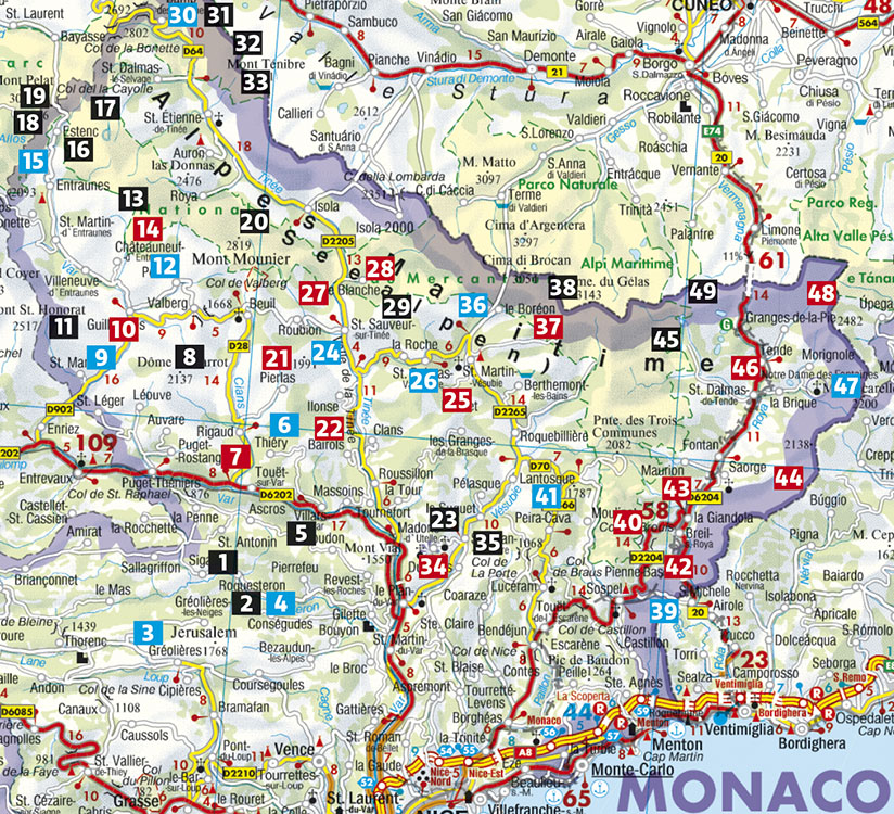 Même si des hordes de touristes s’abattent sur la Côte d’Azur en été, la solitude commence dans les Alpes Maritimes, à quelques kilomètres seulement à vol d’oiseau de la Mer Méditerranée. Ce paysage est dominé par des villages idylliques, des massifs méditerranéens de moyenne hauteur et la région, par endroits à caractère alpin, du Parc National du Mercantour. A quelques exceptions près comme Madone de Fenestre, St-Martin Vésubie, le Col de la Bonette ou encore le Lac d’Allos, la solitude règne, chose pratiquement inimaginable pour l’aoûtien en villégiature sur la Riviera .