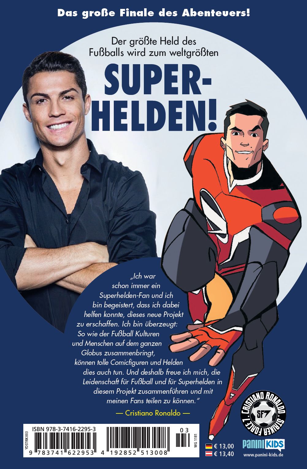 Das große Finale des Abenteuers!Der größte Held des Fußballs wird zum weltgrößten Superhelden!"Ich war schon immer ein Superhelden-Fan und ich bin begeistert, dass ich dabei helfen konnte, dieses neue Projekt zu erschaffen. Ich bin überzeugt: So wie der Fußball Kulturen und Menschen auf dem ganzen Globus zusammenbringt, können tolle Comicfiguren und Helden dies auch tun. Und deshalb freue ich mich, die Leidenschaft für Fußball und für Superhelden in diesem Projekt zusammenführen und mit meinen Fans teilen zu können."- Cristiano Ronaldo -