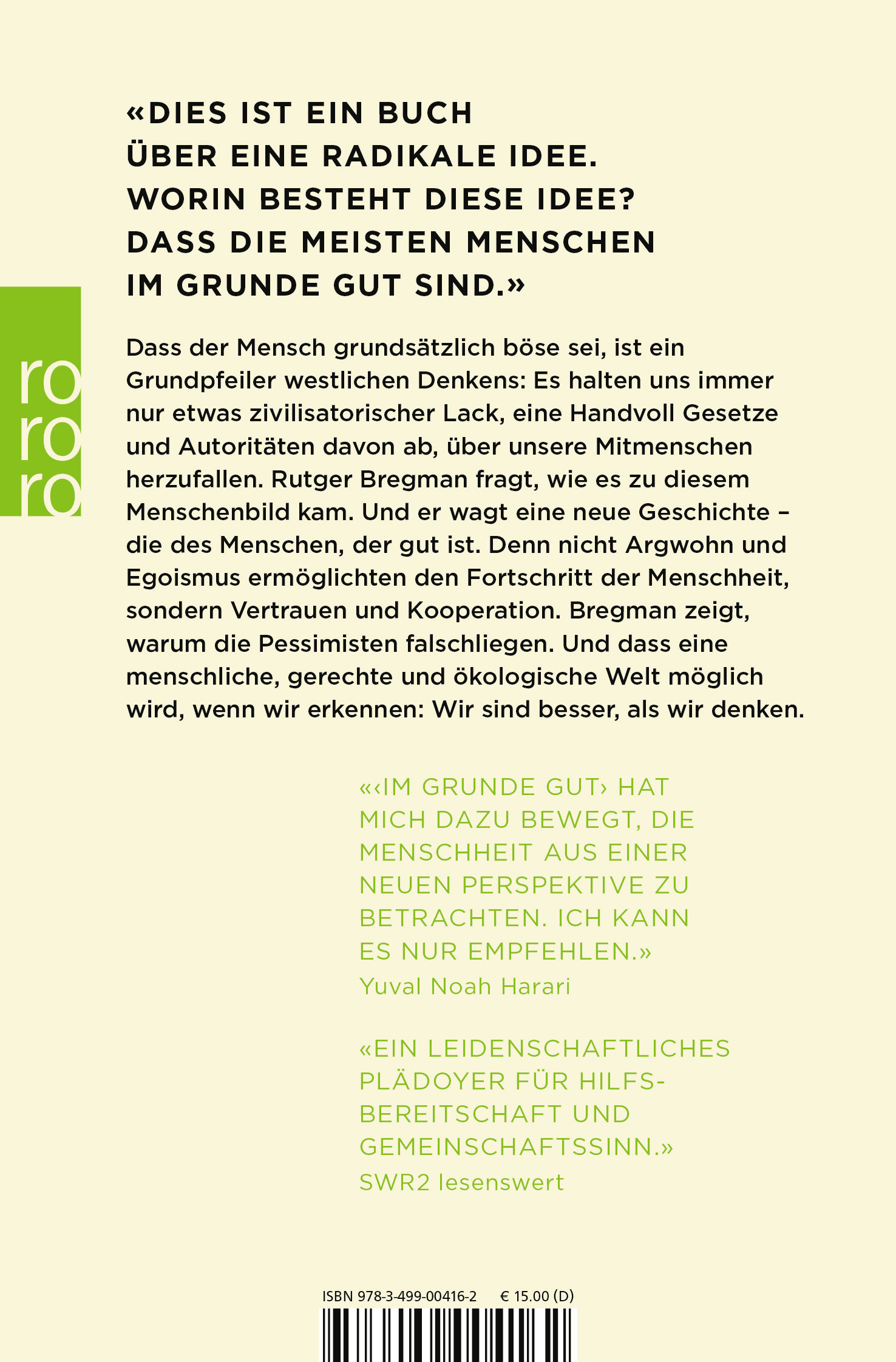 Rutger Bregman, geboren 1988, ist Historiker und einer der innovativsten Denker Europas. 2017 erschien sein Buch Utopien für Realisten, 2020 folgte der Im Grunde gut, das bisher in 46 Sprachen übersetzt wurde. Er lebt mit seiner Familie in den Niederlanden.
