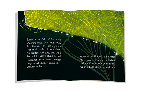 "Leiser Regen fiel auf den alten Wald und wusch den Sommer von den Bäumen. Das Laub erglühte jetzt in allen erdenklichen Farben. Ein sanfter Wind sang dem Wald das Lied der letzten Stunden, und ein matter Seidensonnenschimmer spiegelte sich in einer Regenpfütze." So beginnt dieses stimmungsvolle Märchen, in dem sich ein Ginkgoblatt auf die Suche macht nach dem Sinn von Werden und Vergehen - dem Sinn des Lebens.