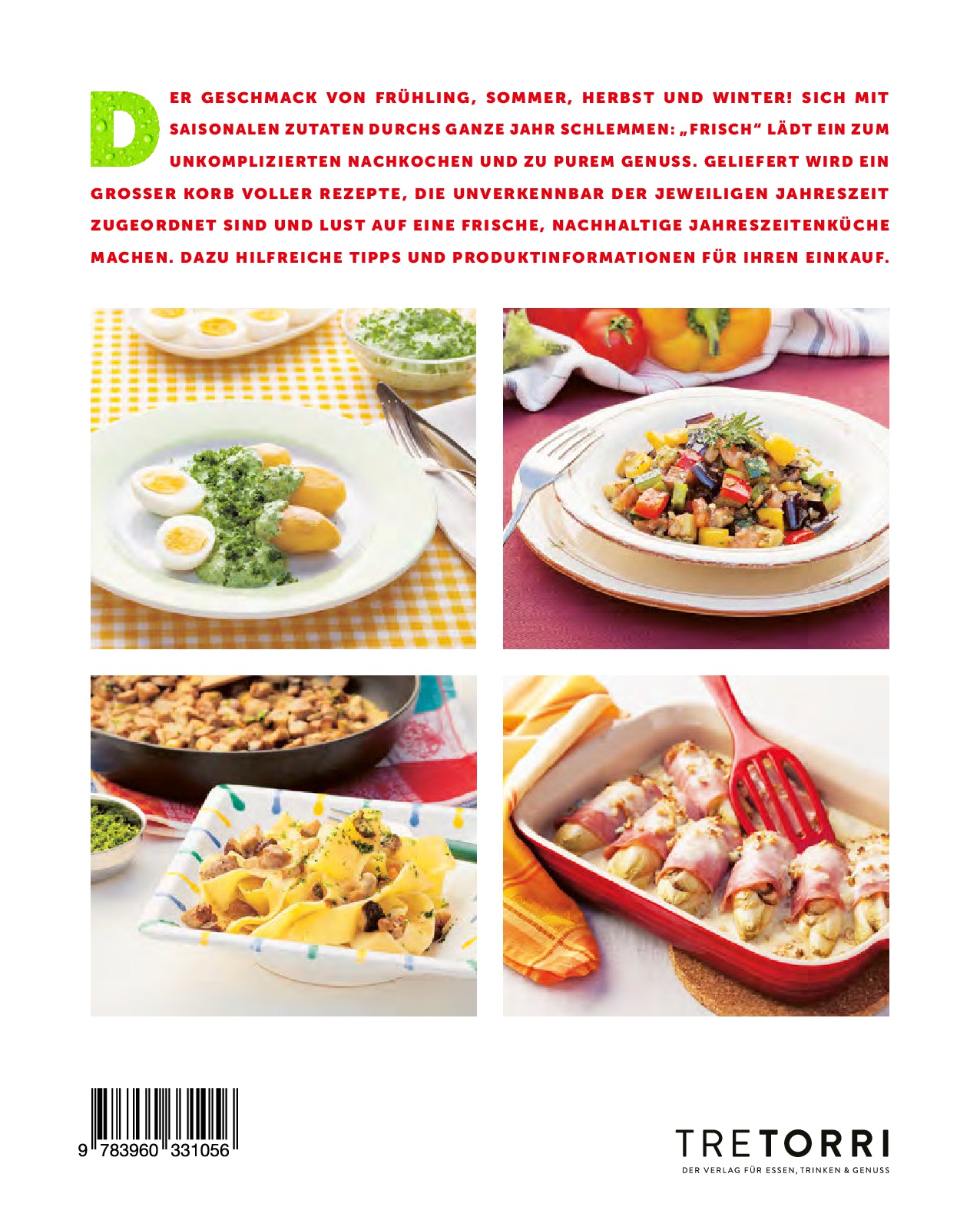 Hier ist der Name Programm: Das Kochbuch FRISCH lädt zum Nachkochen und Genießen ein – und das mit saisonalen Zutaten an 365 Tagen im Jahr. 22, nach Jahreszeiten sortierte Produkte wie frische Kräuter, Pilze, zahlreiche Obst-, Gemüsesorten und Co. liefern dabei köstliche Rezepte, die unverkennbar mit der jeweiligen Jahreszeit verwoben sind. Die Produktporträts und Rezepte werden durch hilfreiche Tipps und Tricks ergänzt.