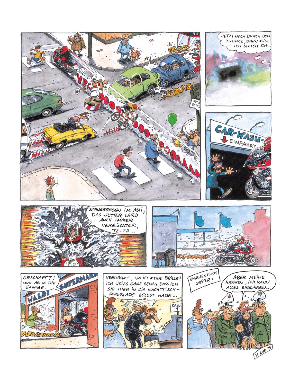 Der hochgetaktete Comic-Spaß von Holger Aue treibt selbst dem härtesten Biker vor Lachen Tränen in die Augen.