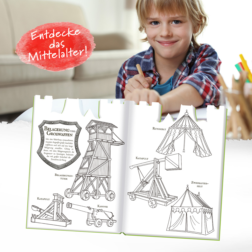 Mit diesem spannenden und informativen Ausmalbuch geht es auf Zeitreise ins Mittelalter. Ein Muss für Ritter- und Burgen-Fans!