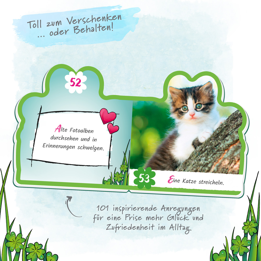 Dieses Buch gibt viele schöne Anregungen, die sinnstiftend und glücklich machen! Ein tolles formgestanztes Buch zum Thema Glück.