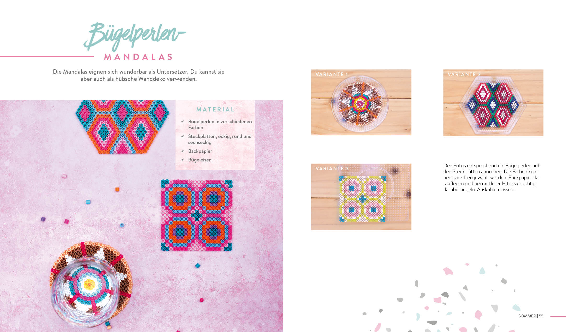 - Jeder kann basteln: Bügelperlen-Untersetzer, Papiergirlanden und Mini-Makrame-Anhänger ganz einfach nacharbeiten dank bebilderter Anleitungen