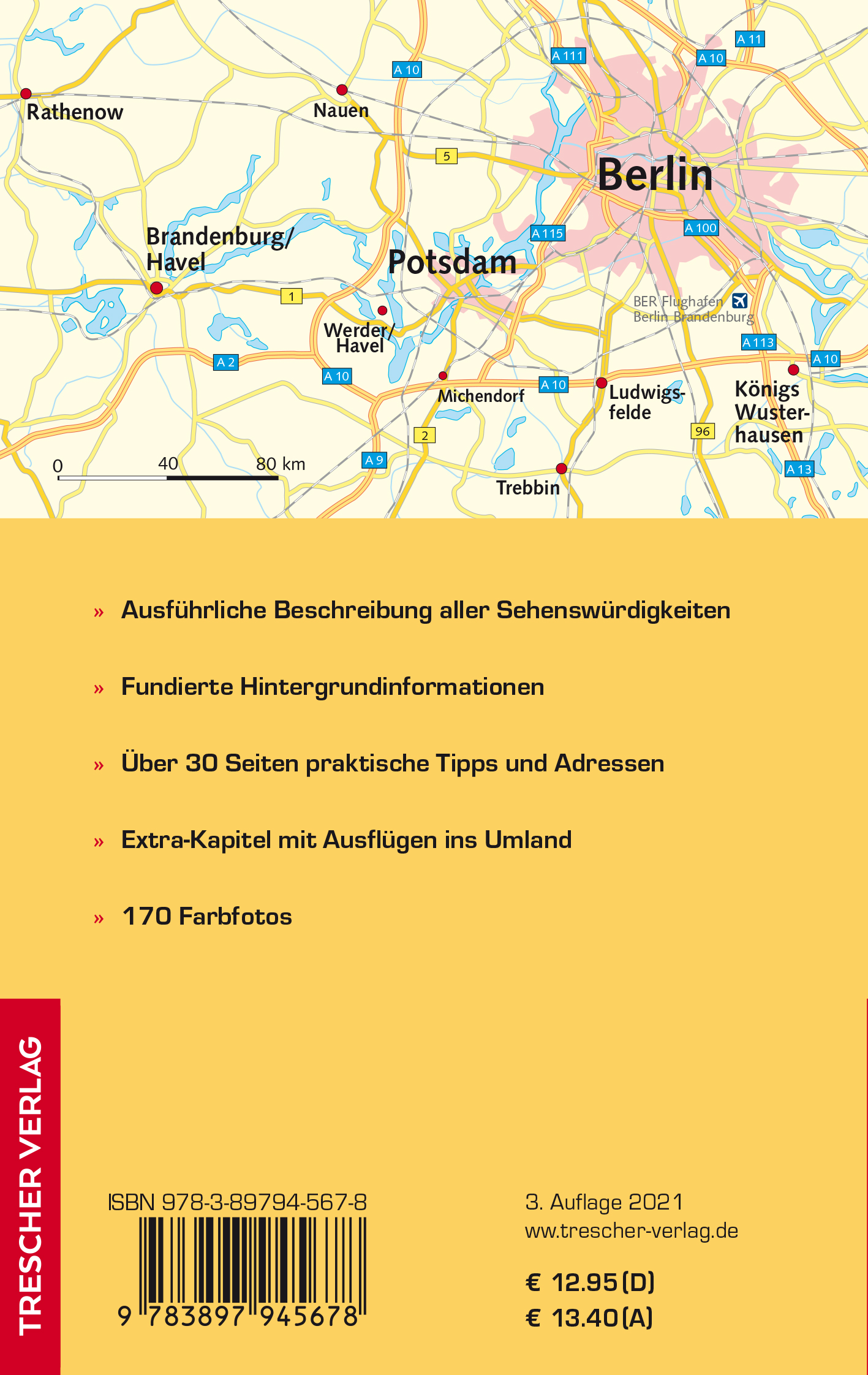 VORWORTFür viele zählt Potsdam zu den schönsten Städten in Deutschland. Von zahlreichen Seen und den sanften Hügeln des Havellands umgeben, liegt die brandenburgische Landeshauptstadt eingebettet in einem märchenhaften Flickenteppich aus Wasser und Land. Brandenburgische Kurfürsten, preußische Könige und deutsche Kaiser ließen hier prachtvolle Residenzen erbauen - ein 'preußisches Arkadien', dessen Schlösser- und Gartenlandschaften heute Teil des Weltkulturerbes der Menschheit sind.Große Baumeister, Künstler und Einwanderer aus vielen Ländern haben in der Havelmetropole ihre Spuren hinterlassen. Neben der barocken und klassizistischen Innenstadt legen das Holländische Viertel, die böhmische Weberkolonie Nowawes oder die russische Kolonie Alexandrowka Zeugnis ab von der sprichwörtlichen Toleranz, wie sie in einer berühmten Sentenz von König Friedrich dem Großen Ausdruck gefunden hat: 'Hier muss ein jeder nach seiner Fasson selig werden!'Die 'Insel Potsdam', wie man das in allen vier Himmelsrichtungen von Wasser umzogene Stadtgebiet nennt, ist aber nicht nur eine an bedeutender historischer Gebäude- und Landschaftsarchitektur reiche Stadt. Mit dem Studio Babelsberg schaut sie auf über 100 Jahre Filmgeschichte zurück, und ein spannender Blick hinter die Kulissen der Filmproduktion darf bei einem Potsdam-Besuch nicht fehlen. Als traditionsreicher Standort für Wissenschaft und Forschung spielt die Havelmetropole bereits seit der Einweihung des Astrophysikalischen Observatoriums 1874 international in der ersten Liga, aktuell mit weltweit führenden High-Tech-Institutionen der Geo- und Klimawissenschaften. Die Universität Potsdam, die Fachhochschule und auch die Hochschule für Film und Fernsehen ziehen junge Menschen von überall her zum Studium an den Havelstrand. Und auch das kulturelle Angebot kann sich sehen lassen. Ob Hochkultur oder Off-Szene, ob für Kunstbeflissene, Musikliebhaber oder Partygänger, der Veranstaltungskalender der brandenburgischen Landeshauptstadt ist über das Jahr prall gefüllt - gekrönt von der Potsdamer Schlössernacht, wenn an einem lauschigen Sommerabend vor der Kulisse der prächtig illuminierten Schlösser im Park Sanssouci Konzerte, Tanz und Theater zur Aufführung kommen.Ein Vierteljahrhundert nach dem Fall des Eisernen Vorhangs sind die Narben, die die innerdeutsche Teilung verursacht hat, im Stadtbild immer noch auszumachen; gleichwohl unentwegt irgendwo Neues entsteht, DDR-Erbe abgerissen und Historisches nach alten Plänen wieder aufgebaut wird. Stets begleitet von lebhaften Diskussionen ist die preußische Paradestadt Potsdam, im Spannungsfeld zwischen Tradition und Moderne, mittlerweile eine Stadt auf der Überholspur geworden. Potsdam wächst, wirtschaftlich und - selten in Ostdeutschland - sogar demografisch. Denn nirgendwo lebt man so gerne in Brandenburg wie in der bildschönen Landeshauptstadt. 'Ein Ensemble voller Poesie', hat sie der Verleger und Publizist Wolf Jobst Siedler einmal genannt, 'diese Welt zwischen dem Heiligen See und dem Jungfernsee und den milde sich weitenden Buchten der Havel'. Landschaftlich zauberhaft. Als Stadt viele Reisen wert.>>> Weitere Reiseführer zu Brandenburg und Ostdeutschland finden Sie auf der Website des Trescher Verlags