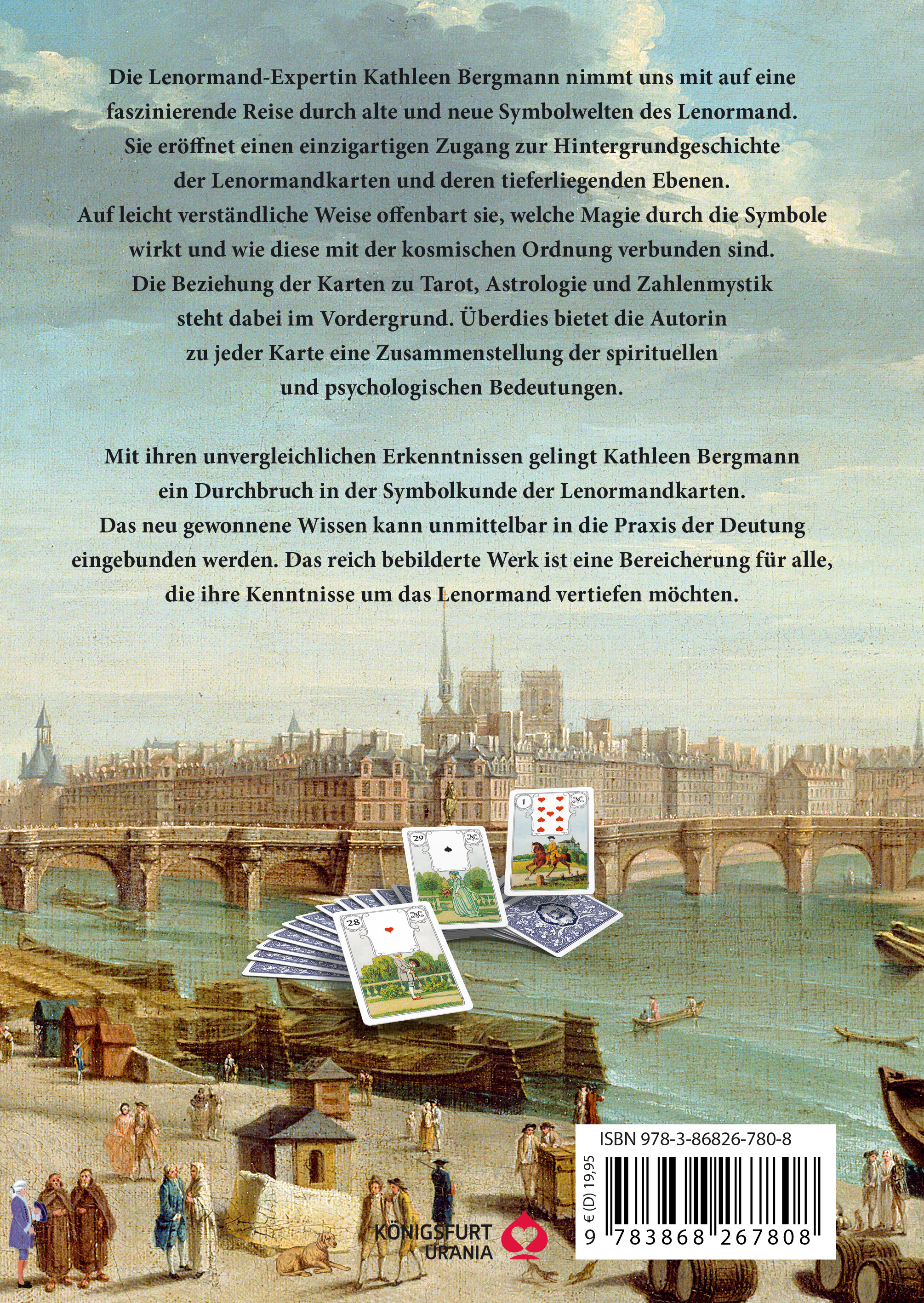Die Lenormand-Expertin Kathleen Bergmann nimmt uns in diesem Buch mit auf eine fabelhafte Reise durch alte und neue Symbolwelten des Lenormand. Sie eröffnet uns dabei den Zugang zu den tieferliegenden Ebenen der Symbolik auf den Karten. Dabei macht sie leicht verständliche Ausflüge in die Welt der Zahlenmystik, der Astrologie und der modernen Psychologie. Sie zeigt astrologische Äquivalente und Verbindungen auf und sie erklärt jede Karte auch im Spiegel des Tarots.