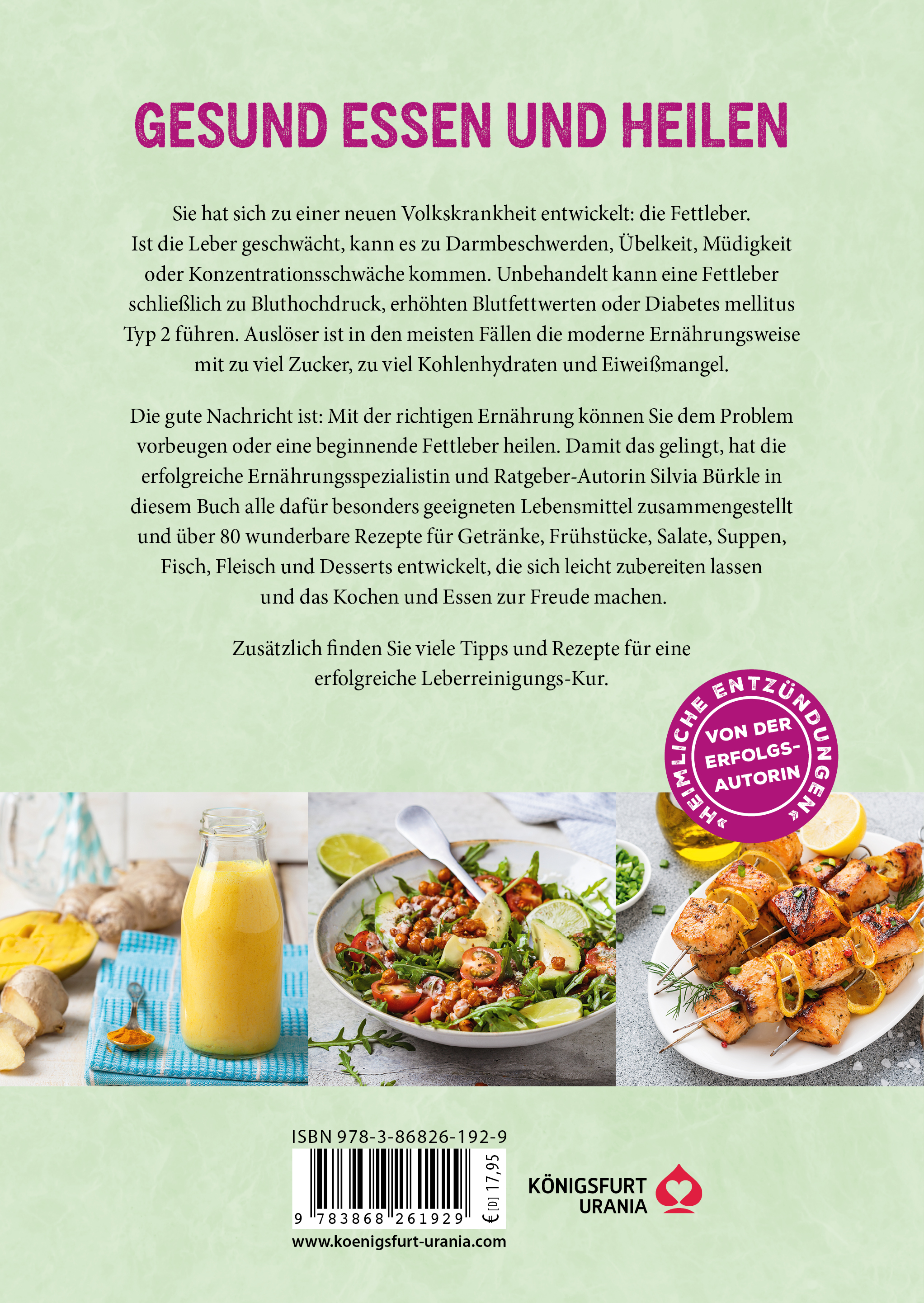 Damit Sie sich allzeit lebergesund ernähren können, hat Silvia Bürkle in diesem Buch alle dafür geeigneten Lebensmittel zusammengestellt und wunderbare Rezepte erarbeitet, die das tägliche Kochen zur Freude machen: vom Frühstück bis zum Abendessen, von unkompliziert bis raffiniert, in erster Linie lecker! 80 Rezepte für Aufstriche, Salate, Suppen, Fisch- und Gemüsegerichte sowie Desserts.