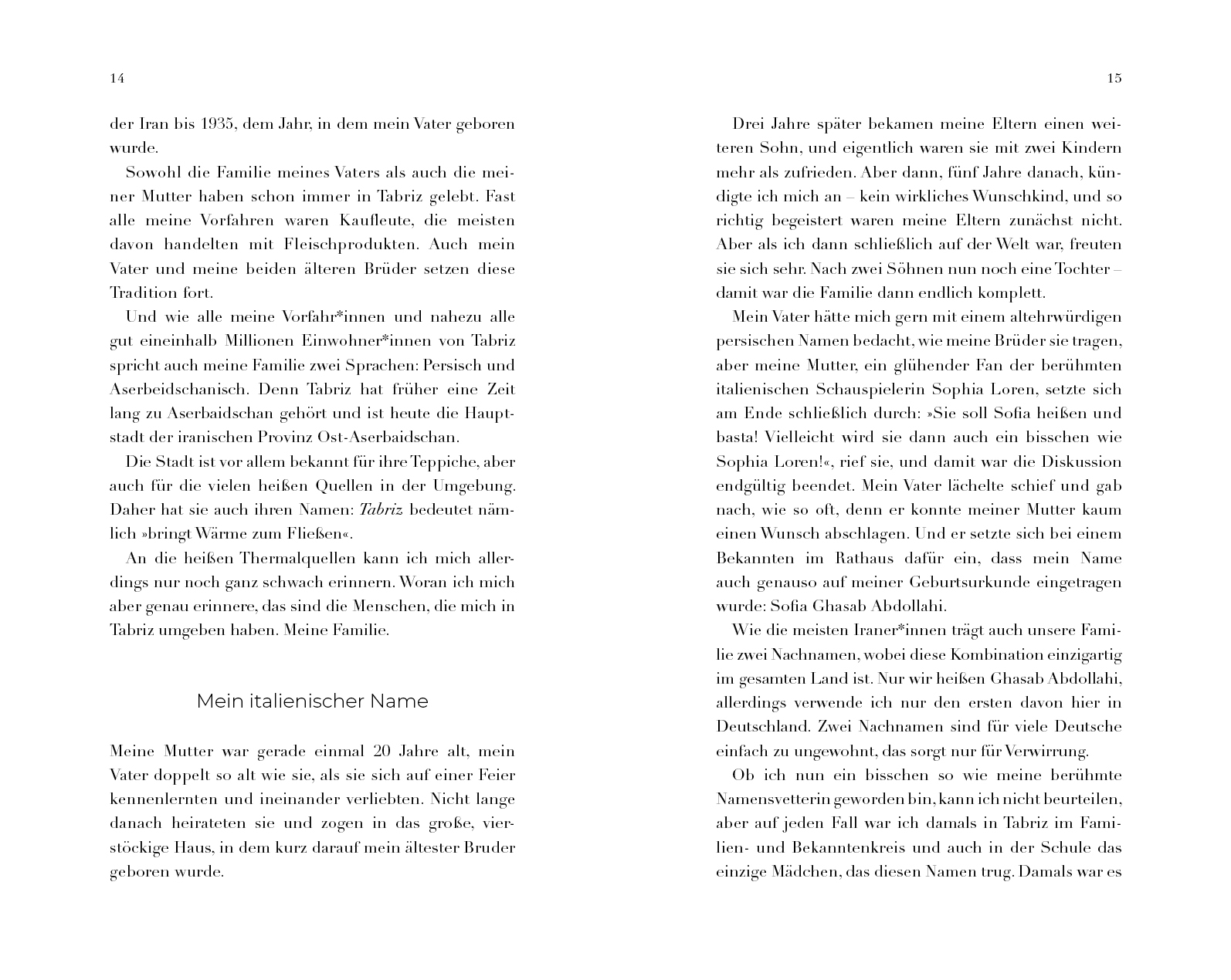 Sofia Ghasab, Jahrgang 1986, kam nach ihrer Flucht aus dem Iran mit 15 Jahren nach Deutschland. Heute lebt sie in Stuttgart und führt erfolgreich ihre Akademie für Microblading-Behandlungen. 2018 hat sie sich ihren Traum erfüllt und eine eigene Augenbrauen-Produktlinie auf den Markt gebracht. Ihre Erfahrungen als erfolgreiche Geschäftsfrau und ihre Erlebnisse verarbeitet sie in ihrem ersten Buch