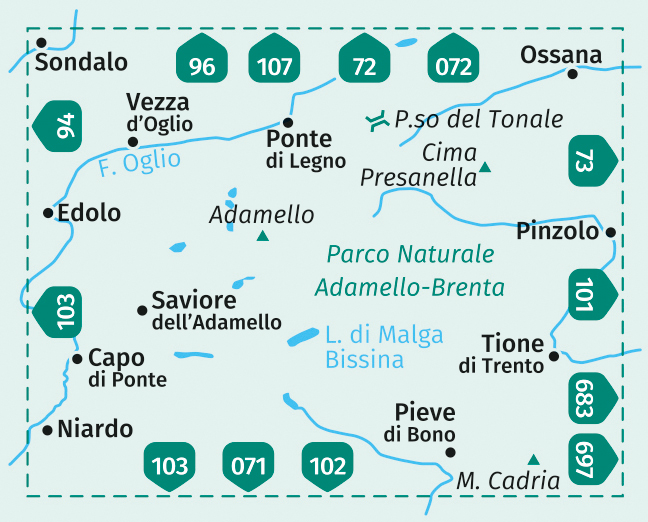 Ausstattung der Wanderkarte Adamello, La Presanella: