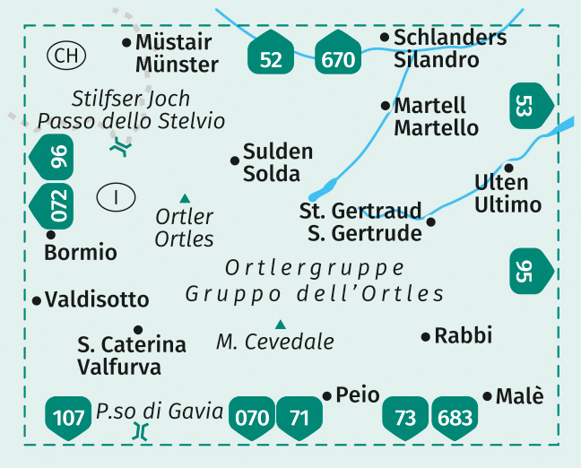 Ausstattung der Wanderkarte Ortler/Ortles, Cevedale: