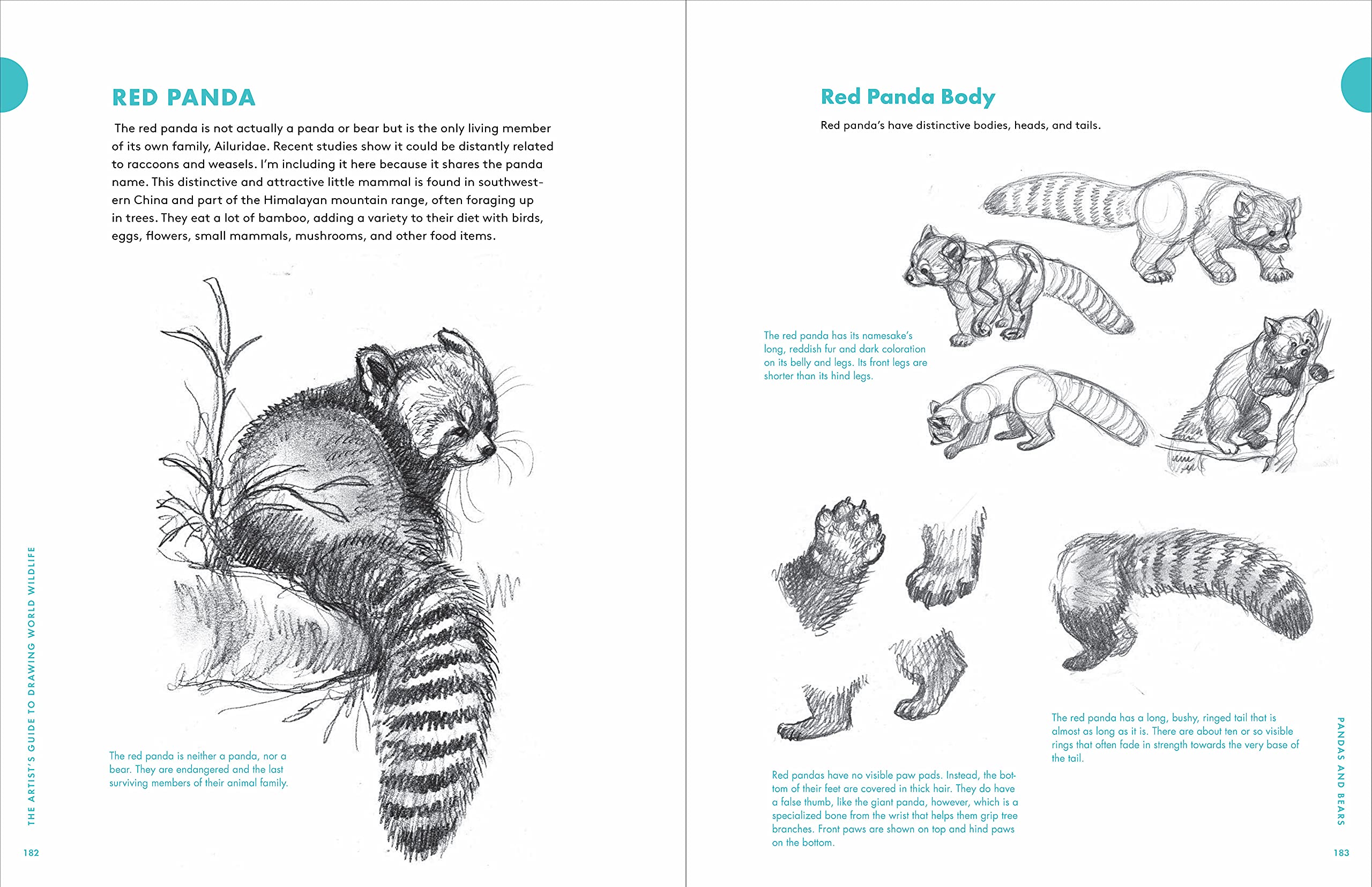 There's a huge and amazing variety of wildlife in the world and this book will help readers get to know and draw it. First, there's a section on basic techniques and concepts any artist should know when drawing animals, such as information on anatomy, body types, how to draw fur and feathers, and other useful tips. The book then explores many of the best-known or notable species of wildlife around the world, looking at carnivores, omnivores, and herbivores. Most well-known mammals can be found here, plus some lesser-known ones. There's also a look at some birds and reptiles.