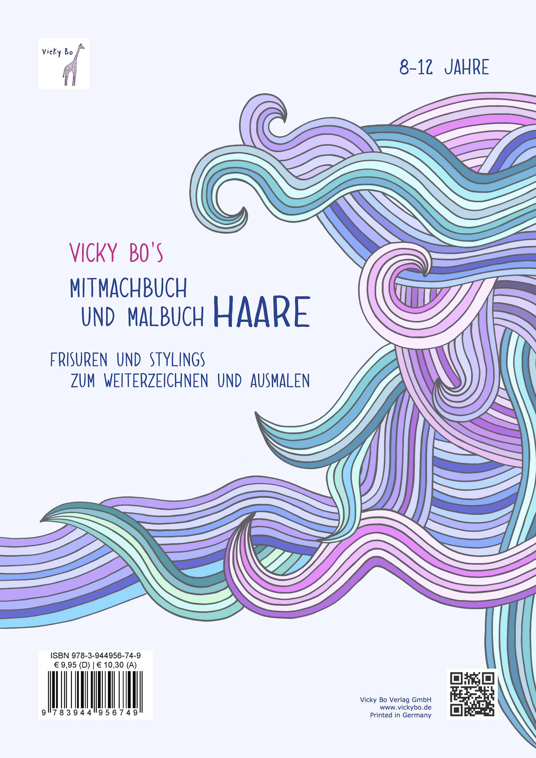 In diesem Mitmachbuch und Malbuch findest du Zeichnungen zum Aus- und Weitermalen. Es dreht sich alles um das Thema Haare. Hochsteckfrisuren werden vollendet, Zöpfe mit dem Buntstift weitergeflochten, Wimpern werden schwungvoll gezeichnet und Accessoires bunt bemalt. Ob gelockt, geglättet oder stylish frisiert: Kunstvoll gezeichnete Haare warten auf Farbe und deine kreativen Ideen. Viel Spaß wünscht Vicky Bo!Mitmachbuch und Malbuch für Kinder von 8 bis 12 Jahren