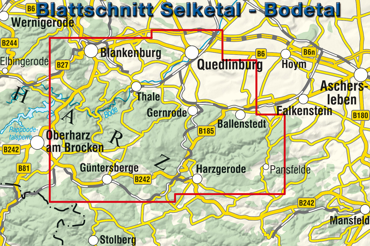 Das Selketal gehört zu den schönsten Ausflugszielen im Harz. Die niedrige Gebirgslage, sowie die breite Öffnung in das warme Harzvorland garantieren besonders milde klimatische Bedingungen sowie das Vorkommen wärmeliebender Flora und Fauna. Zahlreiche seltene und gefährdete Tiere machen das Selketal zu einem besonderen Biotop innerhalb des Harzes.Das Selketal bietet insbesondere Wanderern und Radfahrern hervorragende Möglichkeiten in landschaftlich reizvoller Landschaft, aber mit geringem Schwierigkeitsgrad.Um das wunderschöne Selketal einem breiten Interessentenkreis zugänglich zu machen, wurde 2006 der "Selketal-Stieg" geschaffen. Der Selketal-Stieg startet in Stiege und führt über 67 km durch das Harzvorland nach Quedlinburg.Die neue 4. Ausgabe der reiß- und wetterfesten Rad- und Wanderkarte Selketal - Bodetal stellt diese schöne Wanderregion zwischen Blankenburg - Güntersberge - Harzgerode und Quedlinburg im übersichtlichen Maßstab 1:25 000 mit dem vollständigen Wander- und Radwanderwegenetz vor. Die neue reiß- und wetterfeste Ausgabe der beliebten Rad- und Wanderkarte wurde in enger Zusammenarbeit mit dem Harzklub und den Tourismusvereinen aktualisiert und überarbeitet.Eine Geländeschummerung visualisiert das Mittelgebirge und ein UTM-Gitter ermöglicht die Nutzung eines GPS-Gerätes.