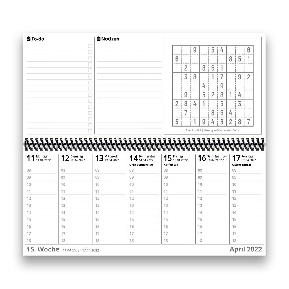 | Schlagworte | 14 Monate • 1 woche 2 seiten • 2022 • 60 Wochen • 7-Tage-Woche • Arbeitszimmer • Beschäftigung • Büro • extra groß • Interkulturelle Feiertage • Jahresübersicht • Kalender • Kindergarten • Lebenshilfe • Notizen • Organiser • Planer • quer-format • Querkalender • Rätsel • Schreibtisch • Schreibtischkalender • Schule • Schulferien • Spiralbindung • Stundenaufteilung • Sudoku • Terminplaner • Tischkalender • Tischkalender 2022 • to do • Wandkalender • XL-Kalender • Zeichnung |