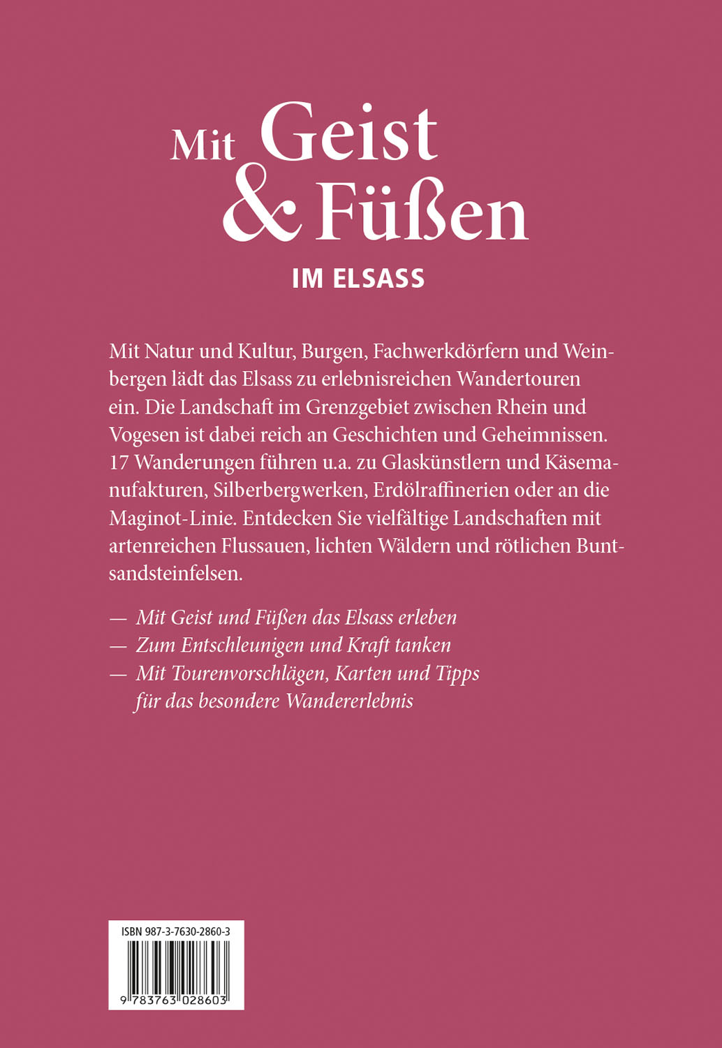 Mit Natur und Kultur, Burgen, Fachwerkdörfern und Weinbergen lädt das Elsass zum Schauen, Staunen und Wandern ein. Zu Fuß lässt sich in diesem geschichtenreichen Grenzgebiet zwischen Rhein und Vogesen, Wissembourg und Mulhouse noch viel Unbekanntes hinter dem Vertrauten entdecken. 17 Themenwanderungen führen zu Glaskünstlern und Silberbergwerken oder an die Maginot-Linie und erzählen von Rittern und Mönchen, Grenzgängern und Kriegswirren. Ein reich bebilderter Band für das besondere Wandererlebnis.Die Wander-Reihe "Mit Geist und Füßen": Elementare Naturkräfte erleben und sich mit allen Sinnen öffnen, der verborgenen Geschichte einer Landschaft nachspüren oder einfach mal zwischendurch Kraft tanken. Im Format für die Jackentasche sind die Bände idealer Anreger und Begleiter für die kleine Auszeit vom Alltag.