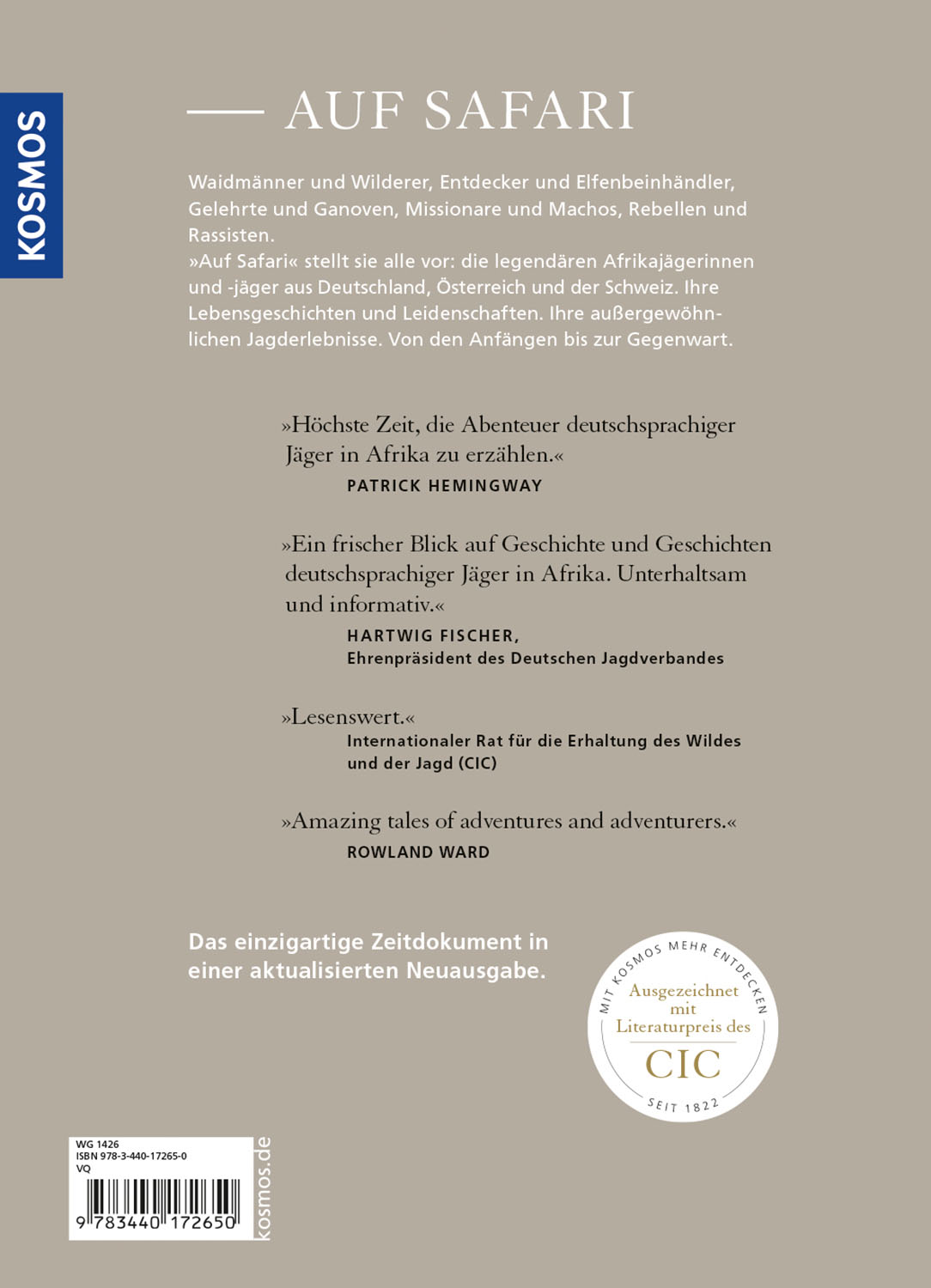 | Schlagworte | Abenteuer Jagd • Afrika • Afrikajäger • geschenk jäger • Jagd • Jagderlebnis • Jagderzählung • Jagen • Jagen in Afrika • Jägerlegende • Jaggeschichten • Jungjäger • Lesebuch Jagd • Safari |