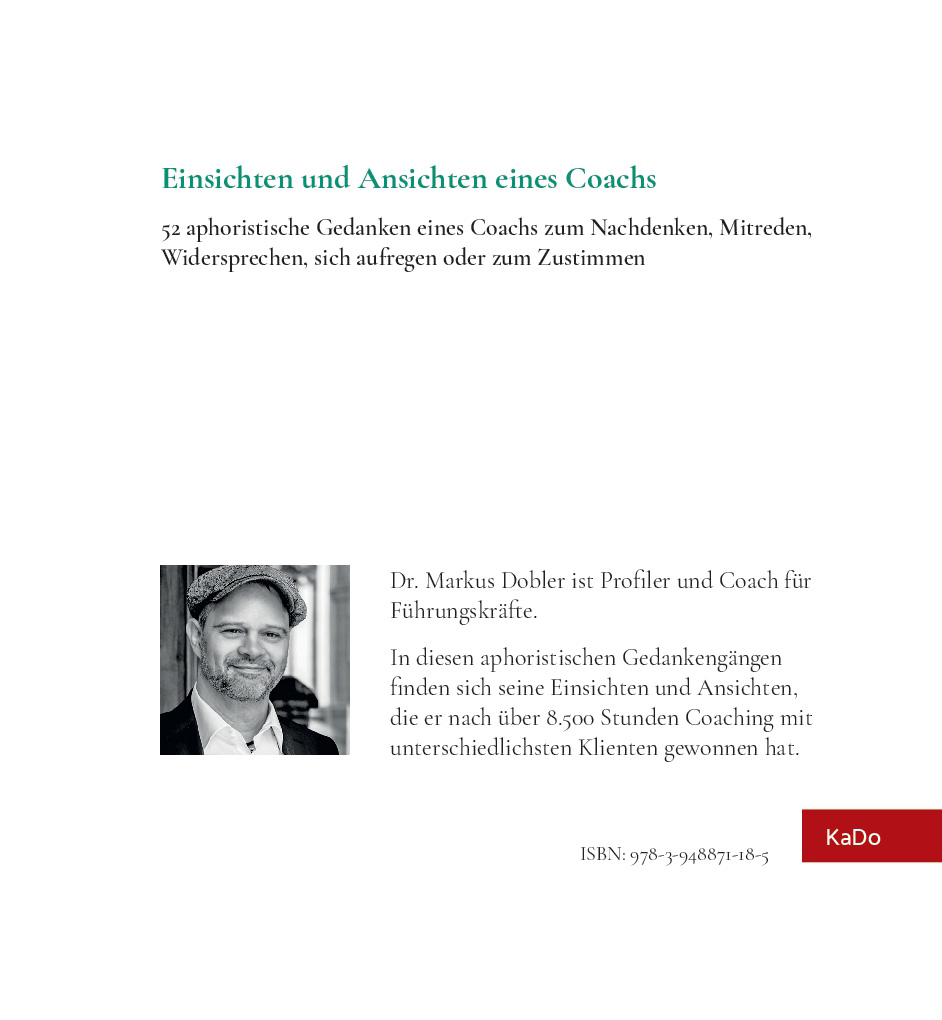 52 aphoristische Gedanken eines Coachs zum Nachdenken, Mitreden, Widersprechen, sich aufregen oder zum Zustimmen.