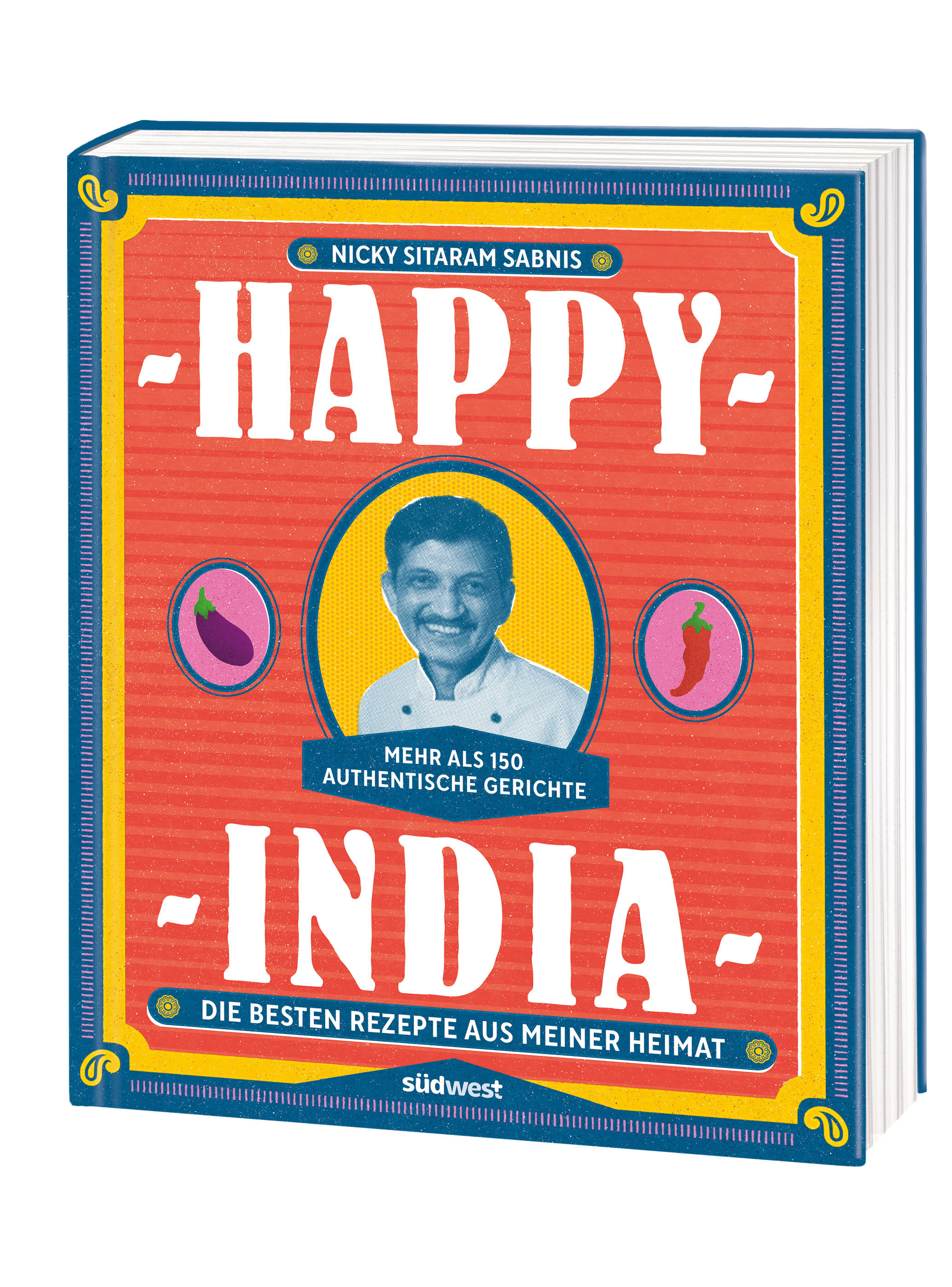 In Happy India nimmt uns der gelernte Koch und Wahl-Chiemgauer Nicky Sitaram Sabnis mit auf eine kulinarische Reise durch sein Heimatland Indien. Auf 240 Seiten präsentiert er heißgeliebte Familienrezepte und Gerichte, die er während seiner Reisen und seiner Ausbildung kennengelernt hat. Nordindische Currys sind ebenso vertreten wie südindische Reisgerichte, cremige Dals und unzählige Auberginen-Variationen. Auch Streetfood, Getränke und zuckersüße, aromatische Desserts dürfen nicht fehlen. Insgesamt kommen so mehr als 150 authentische Rezepte zusammen, die sich mit frischen Zutaten auch bei uns problemlos zubereiten lassen. Kleine Geschichten aus dem indischen Alltag, Anekdoten zu den Gerichten, Bilder aus dem Familienalbum von Nicky Sabnis, von den Straßen der Metropolen und Dörfer lassen uns tief eintauchen in die Küche und Kultur dieses vielgestaltigen Subkontinents.